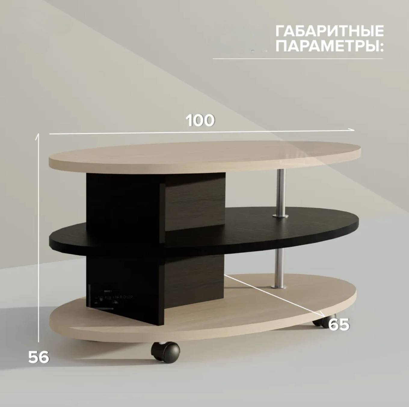Стол журнальный «Консул-4» овальный, для гостиной, венге/дуб молочный (1000х600х540)