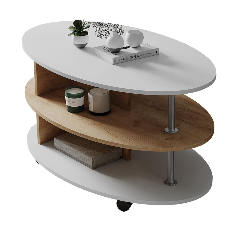 Стол журнальный «Консул-3» ЛДСП, на колесиках, дуб крафт золотой/белый (900х600х560)