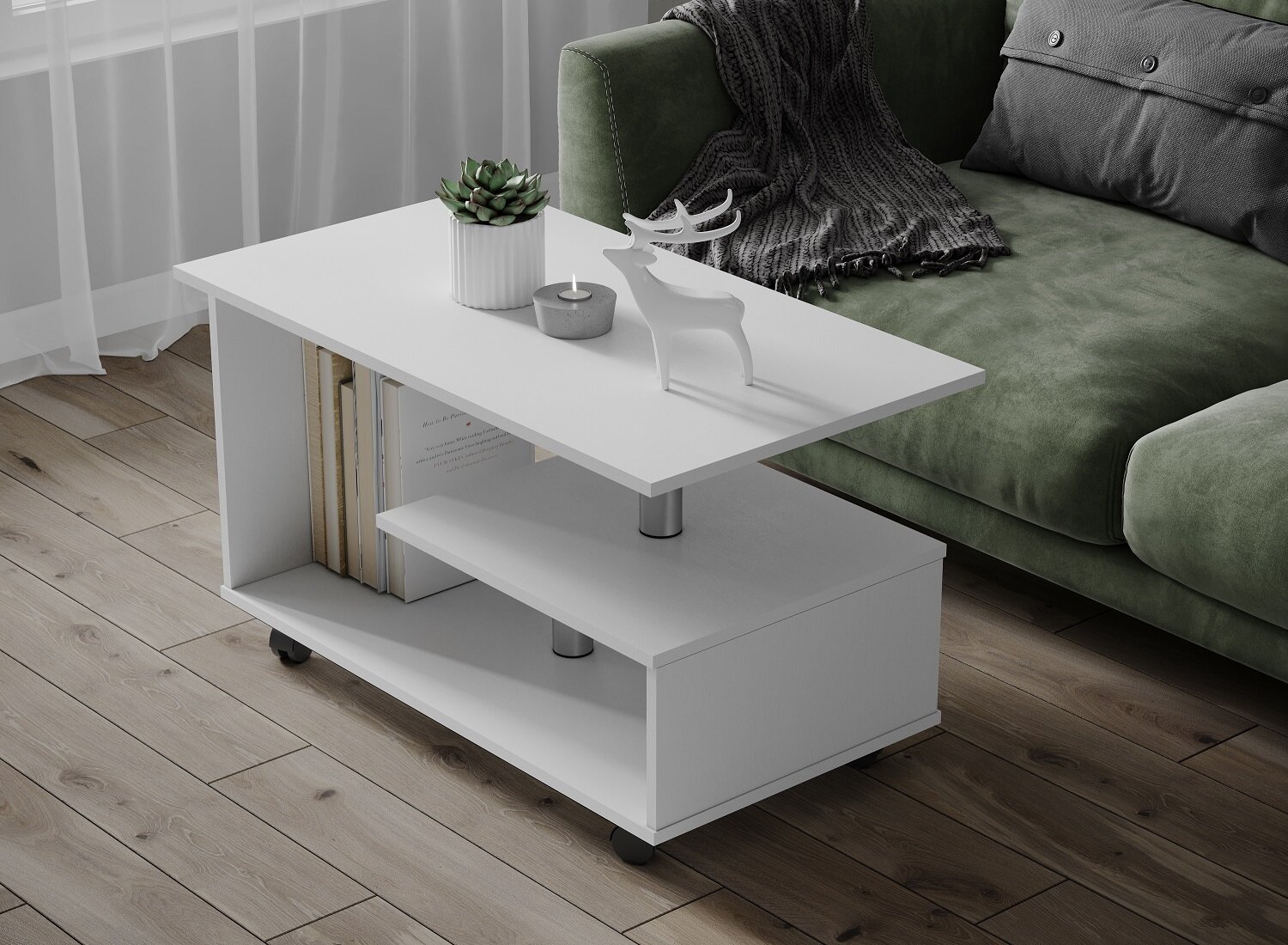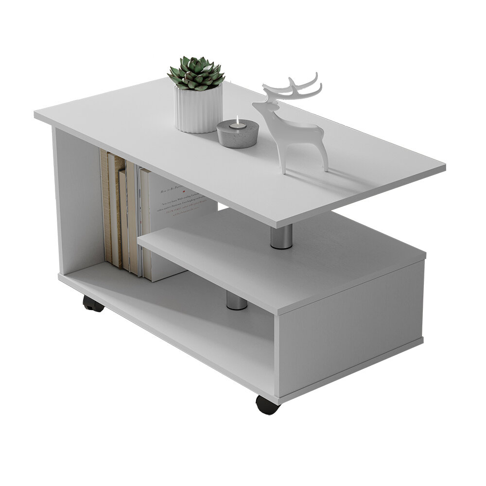 Журнальный Стол на колесных опорах, Белый, 560x1000x650 мм, из ЛДСП