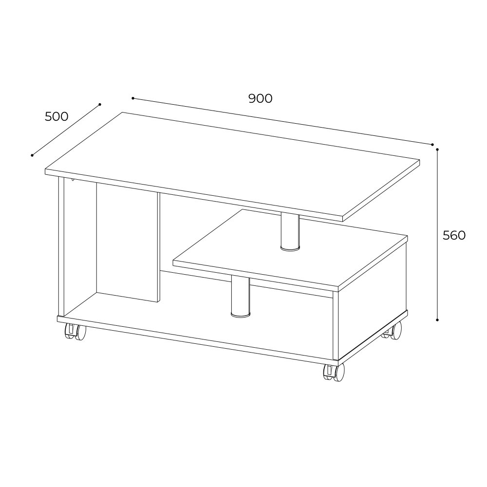 Журнальный Стол на колесных опорах, Ясень Шимо и Дуб Сонома, 560x900x600 мм, из ЛДСП