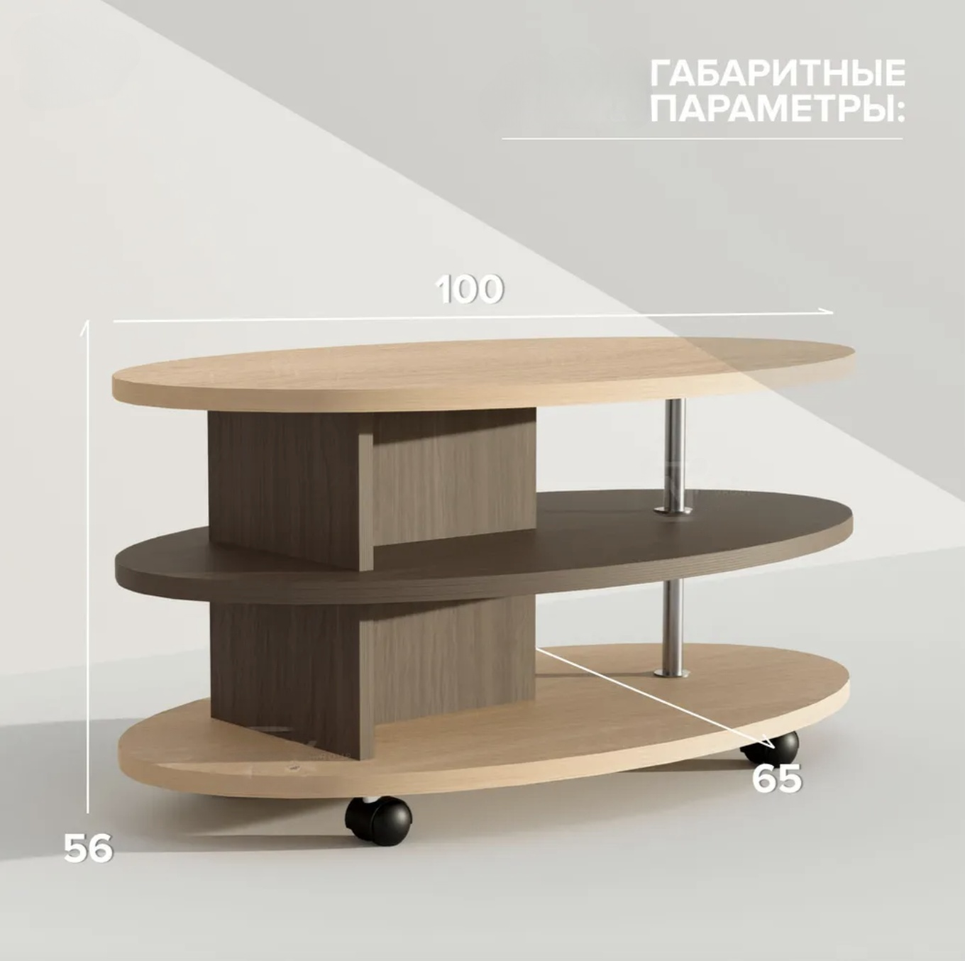 Стол журнальный «Консул-1» овальный, ЛДСП, дуб молочный/венге (900х600х560)