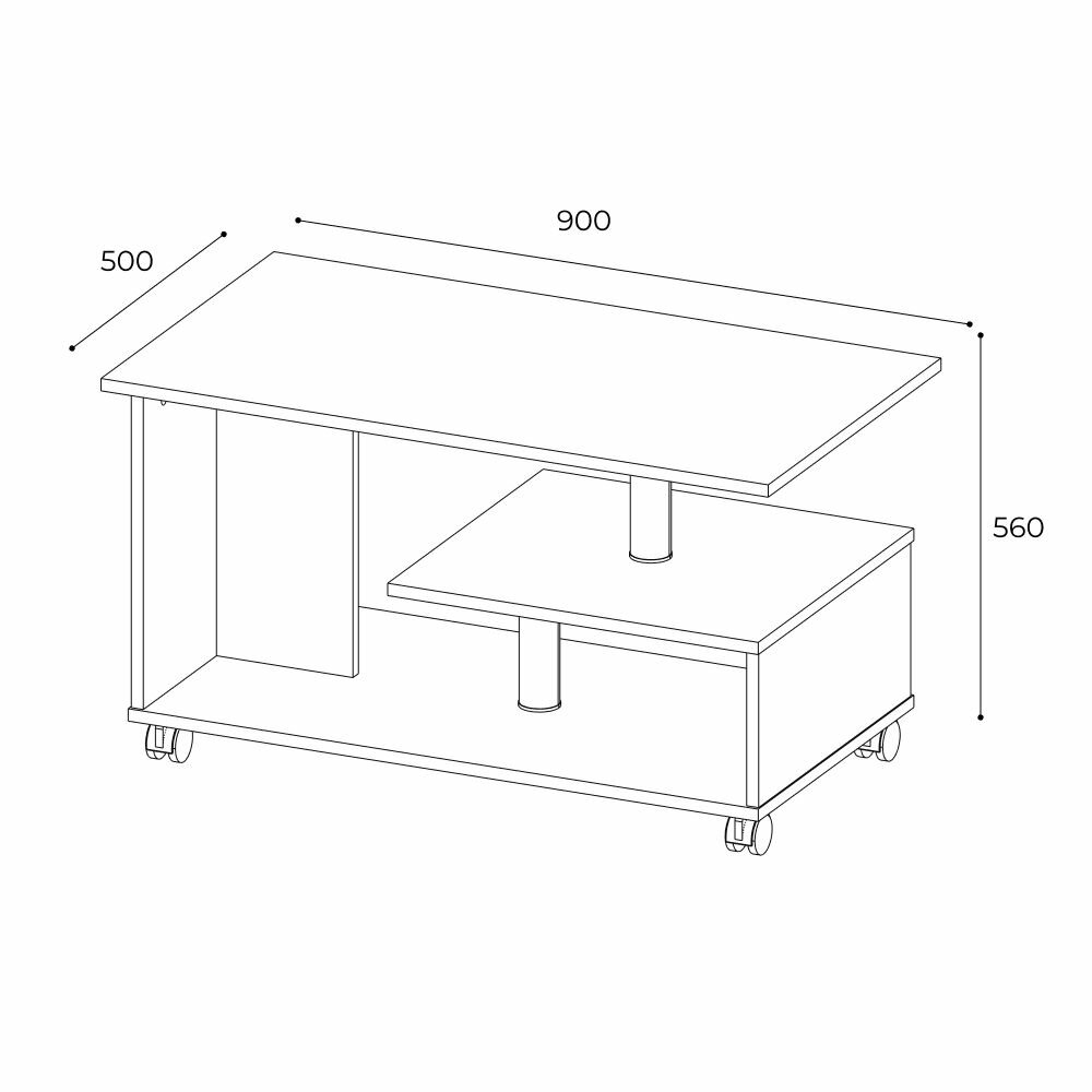 Журнальный Стол на колесных опорах, Белый, 560x1000x650 мм, из ЛДСП