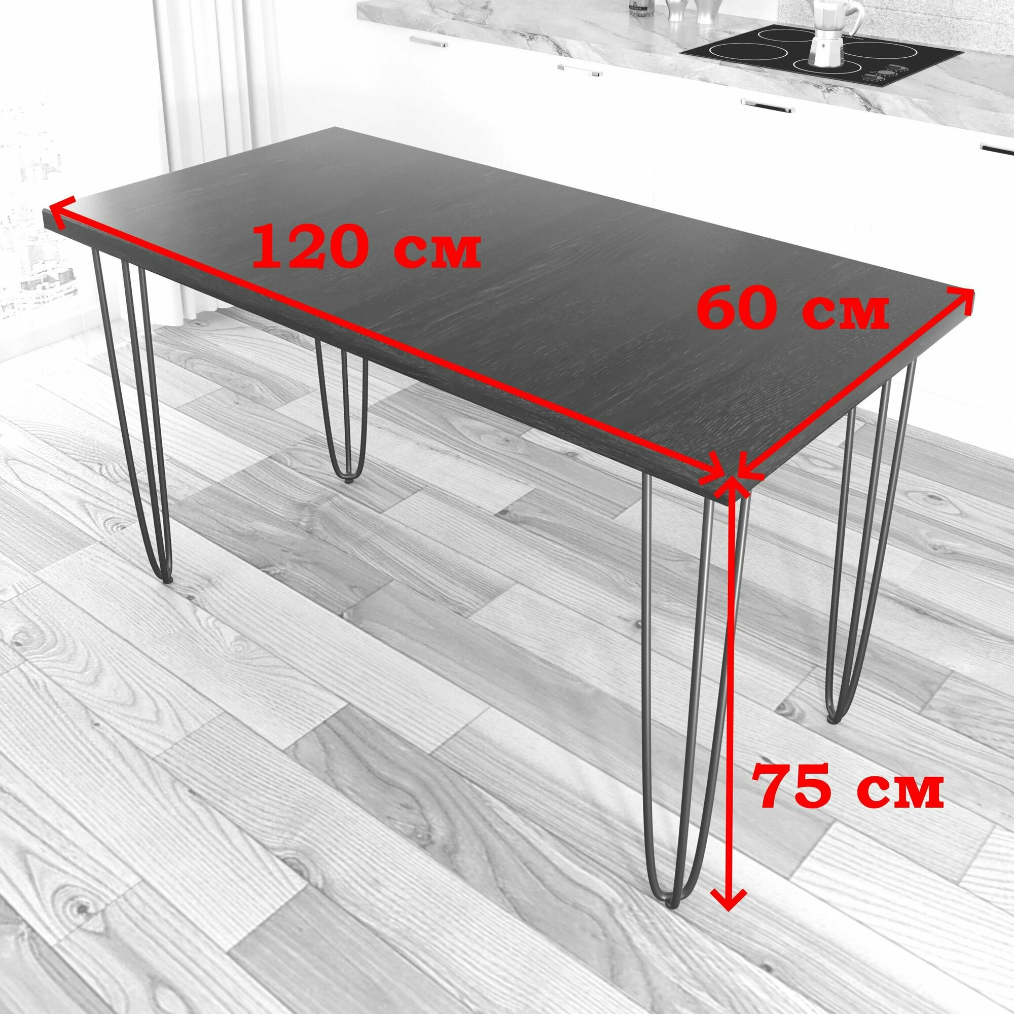 Стол кухонный Loft со столешницей из массива сосны 40 мм без шлифовки и покрытия, с черными металлическими Z-образными ножками, 140х80х75 см