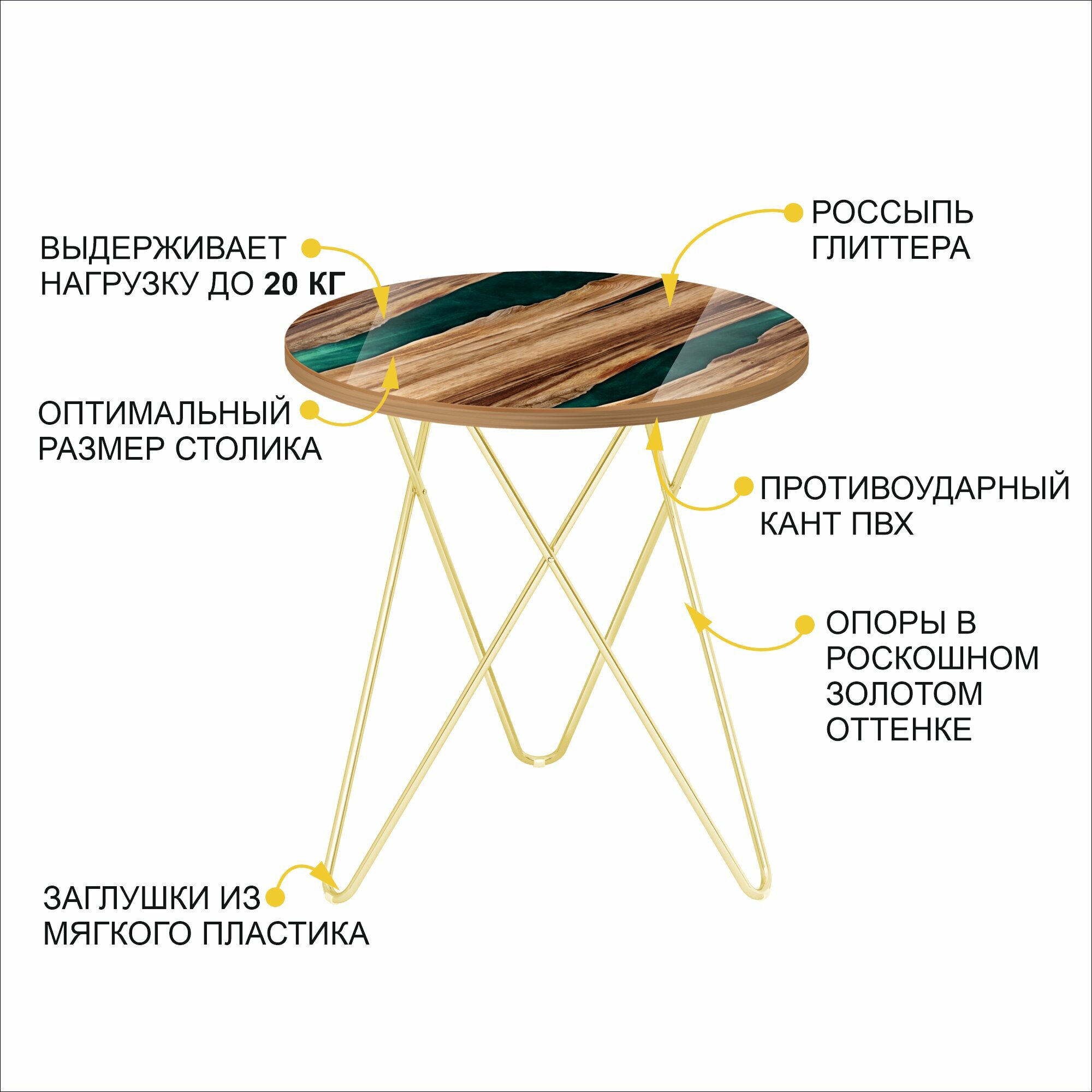 Купить Журнальный стол Рим 28 (06) Река изумрудная/Золото