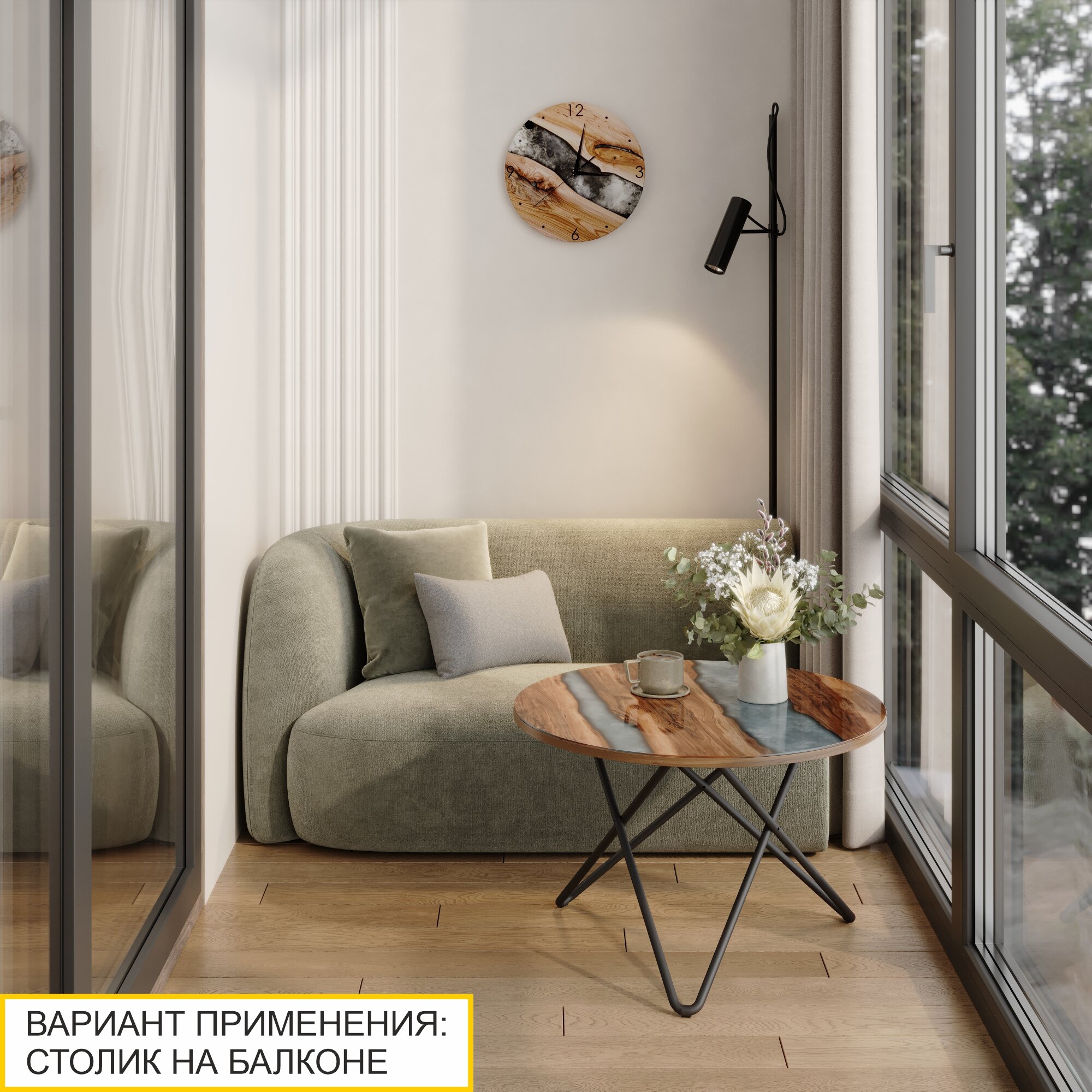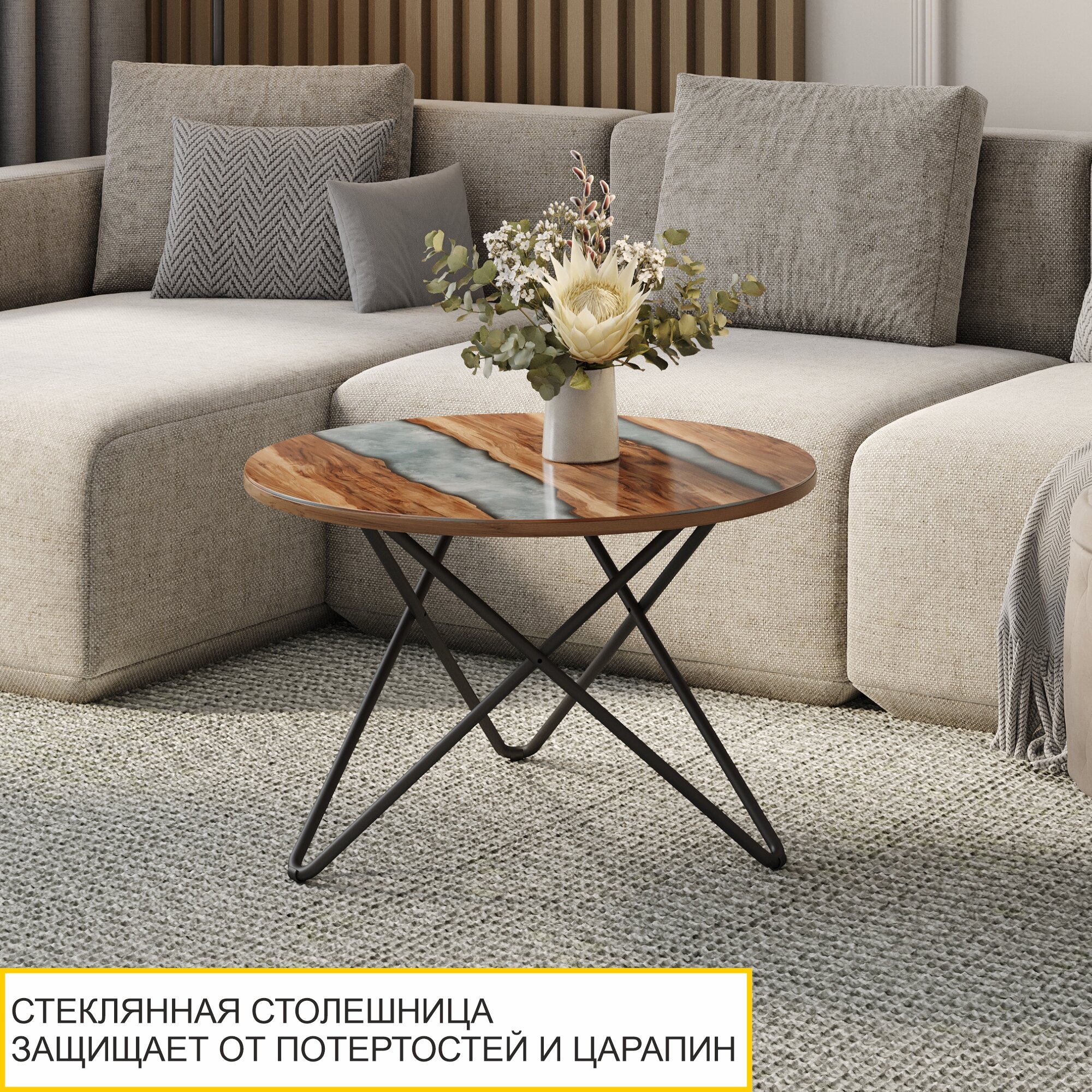 Журнальный стол Рим 28 (05) Река серебристая/Черный, 50х50х53 см