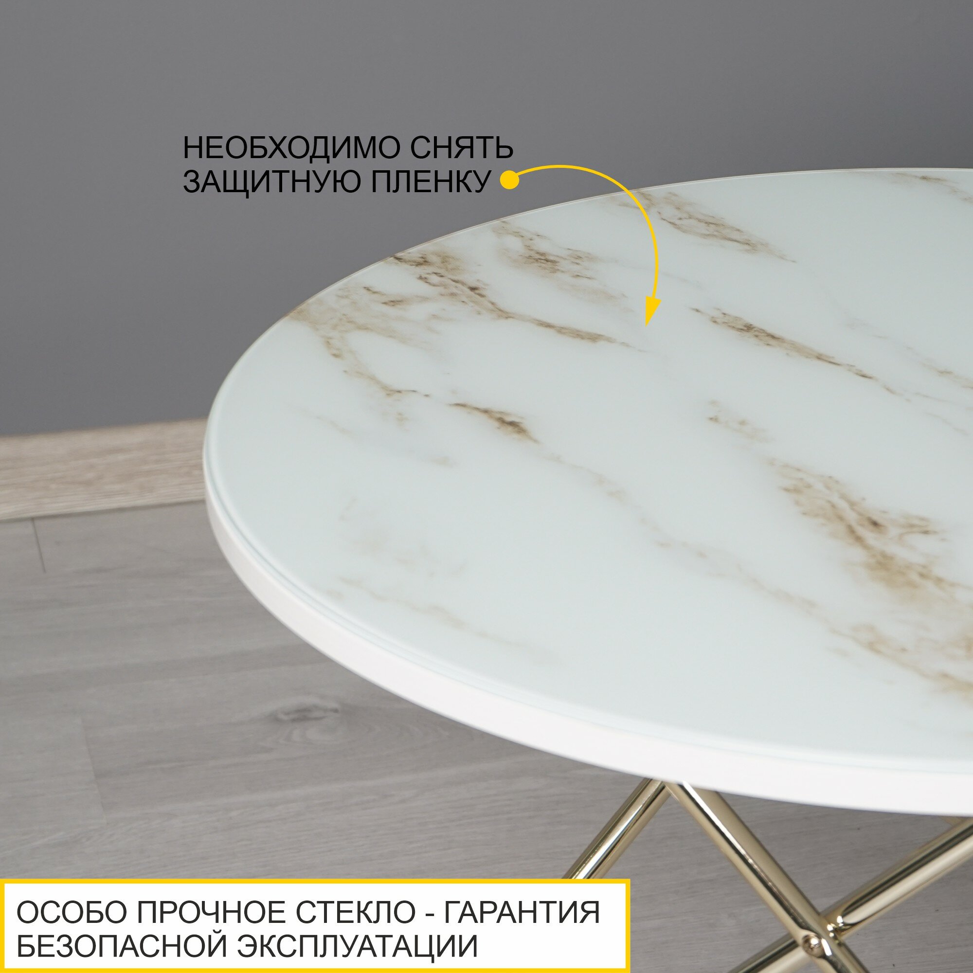 Журнальный стол Рим 36 (01) Белый мрамор/Золото
