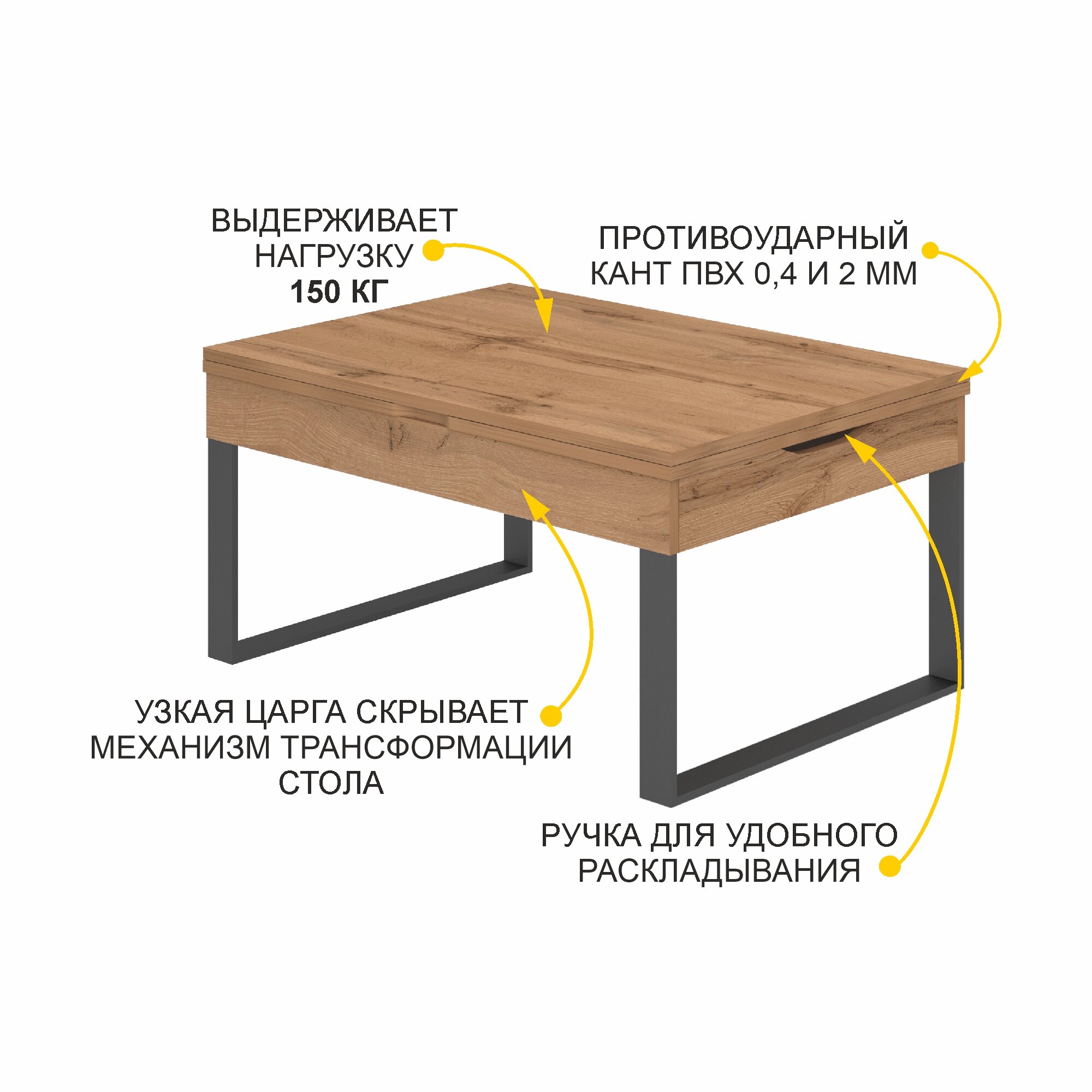 Купить Журнальный стол-трансформер Рим 25 (07) Дуб Вотан/Черный, 85х60х43 см