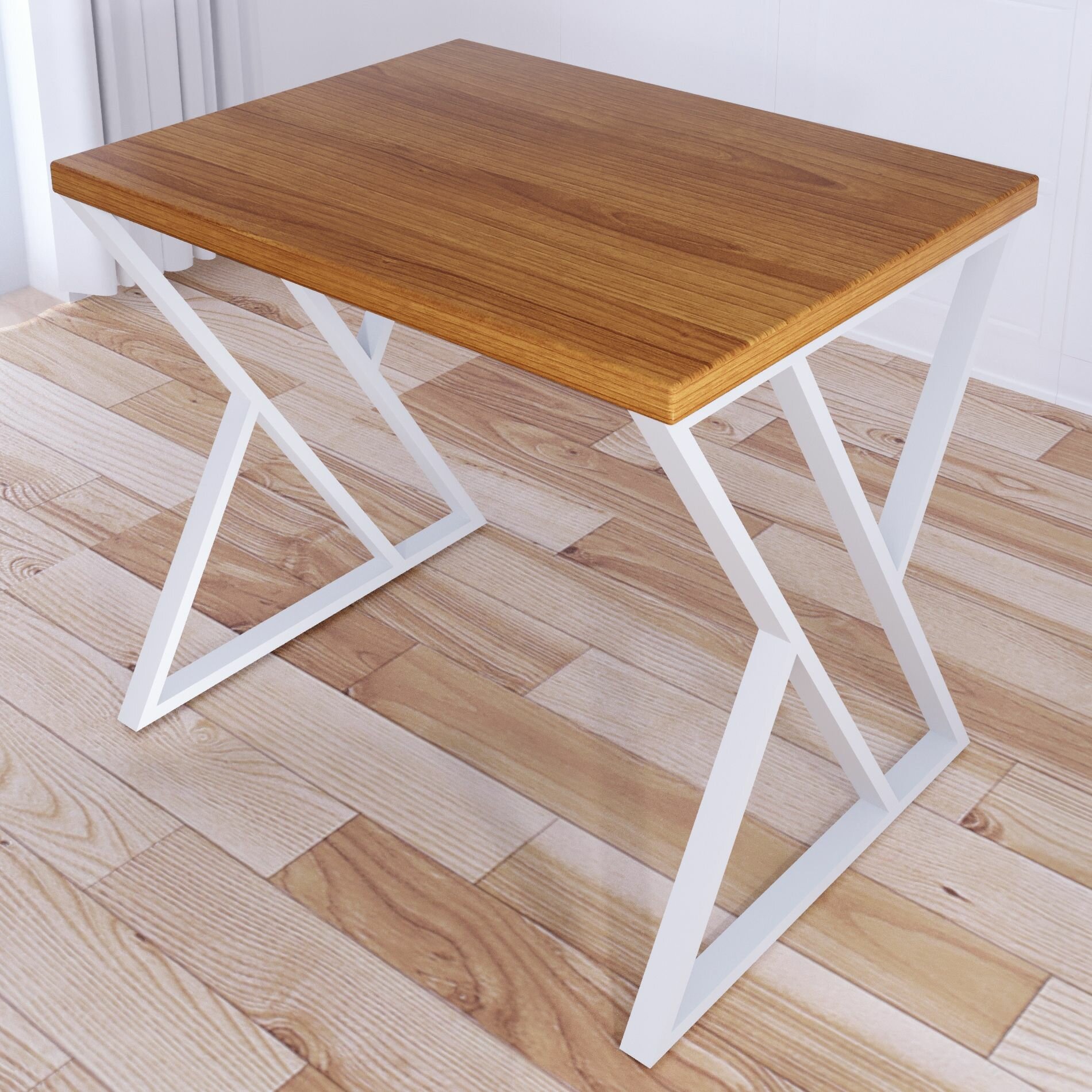 Купить Стол кухонный Loft со столешницей цвета ольхи из массива сосны 40 мм и белыми металлическими Z-образными ножками, 110х80х75 см