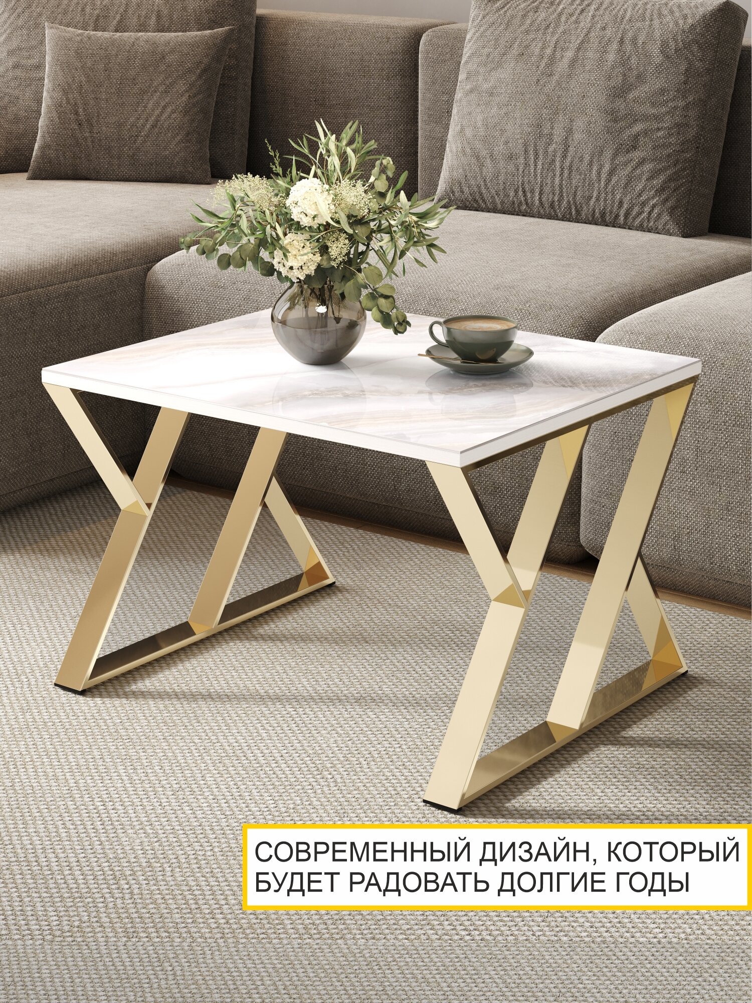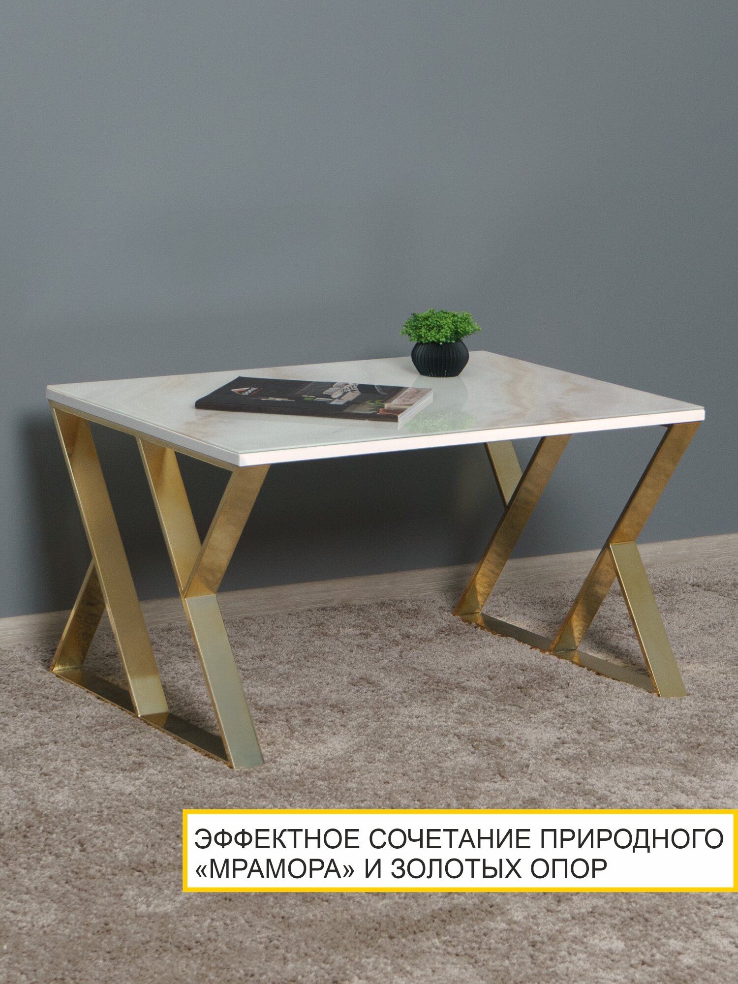 Журнальный стол Рим 35 (01) Мрамор золотистый/Золото интересное:
