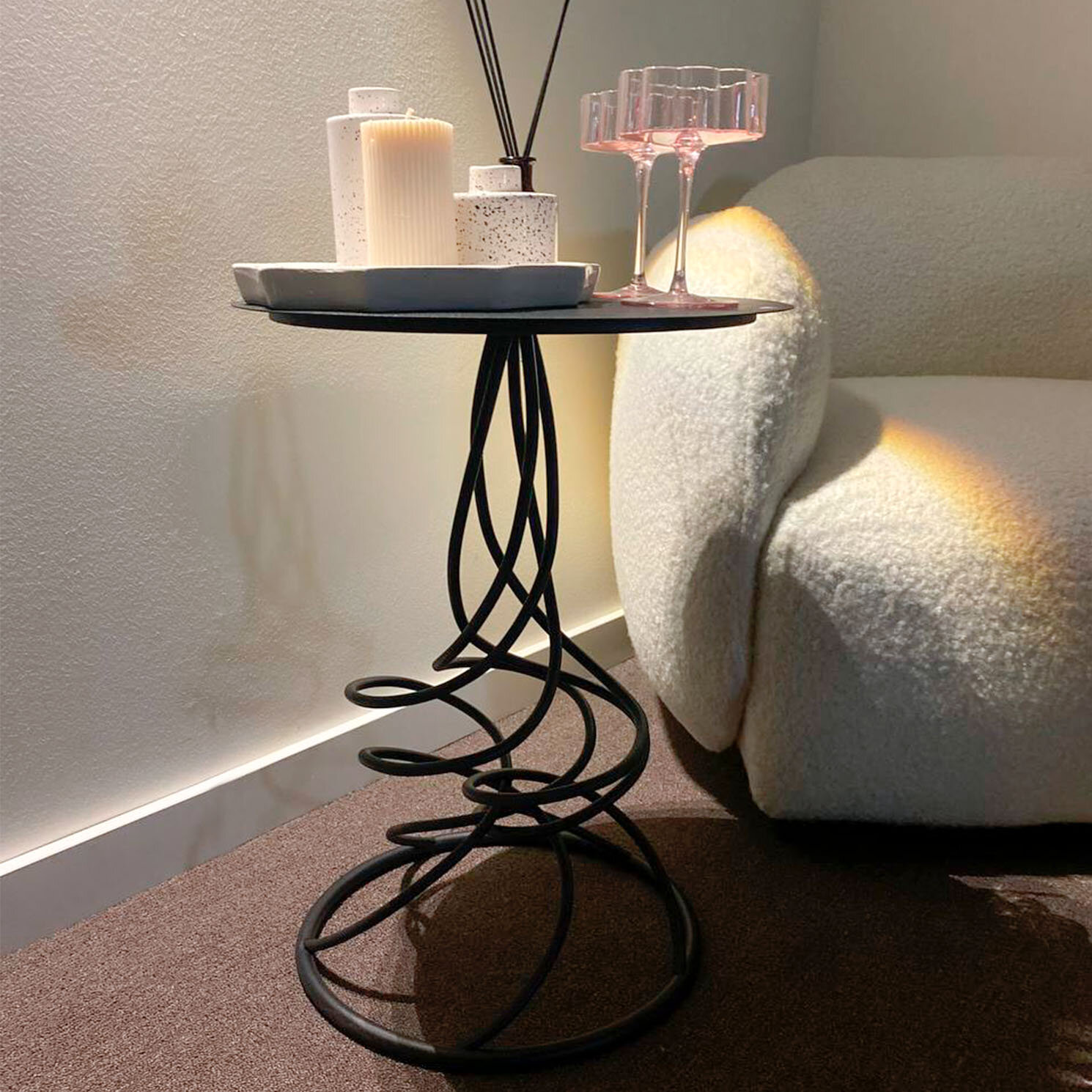 Столик приставной журнальный кофейный черный в современном стиле круглый маленький интересное: