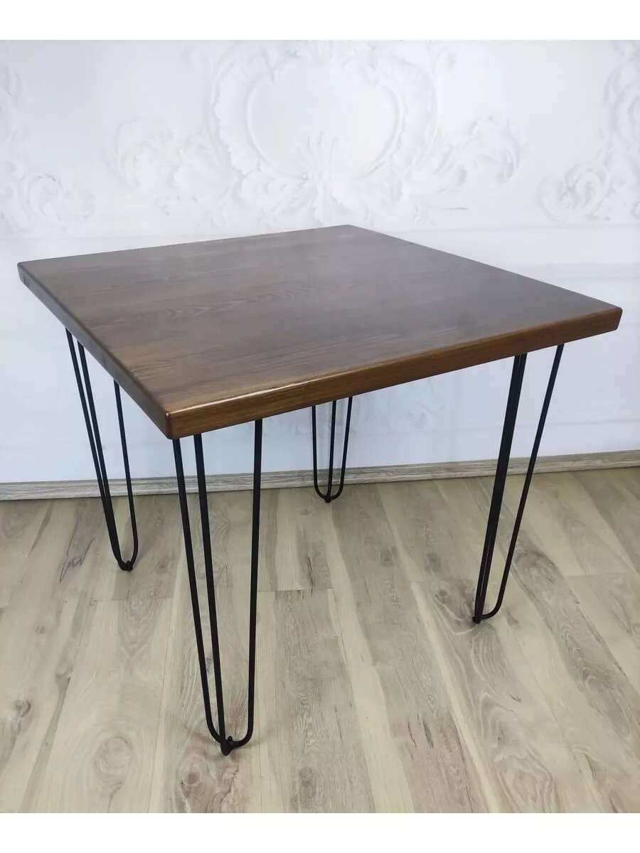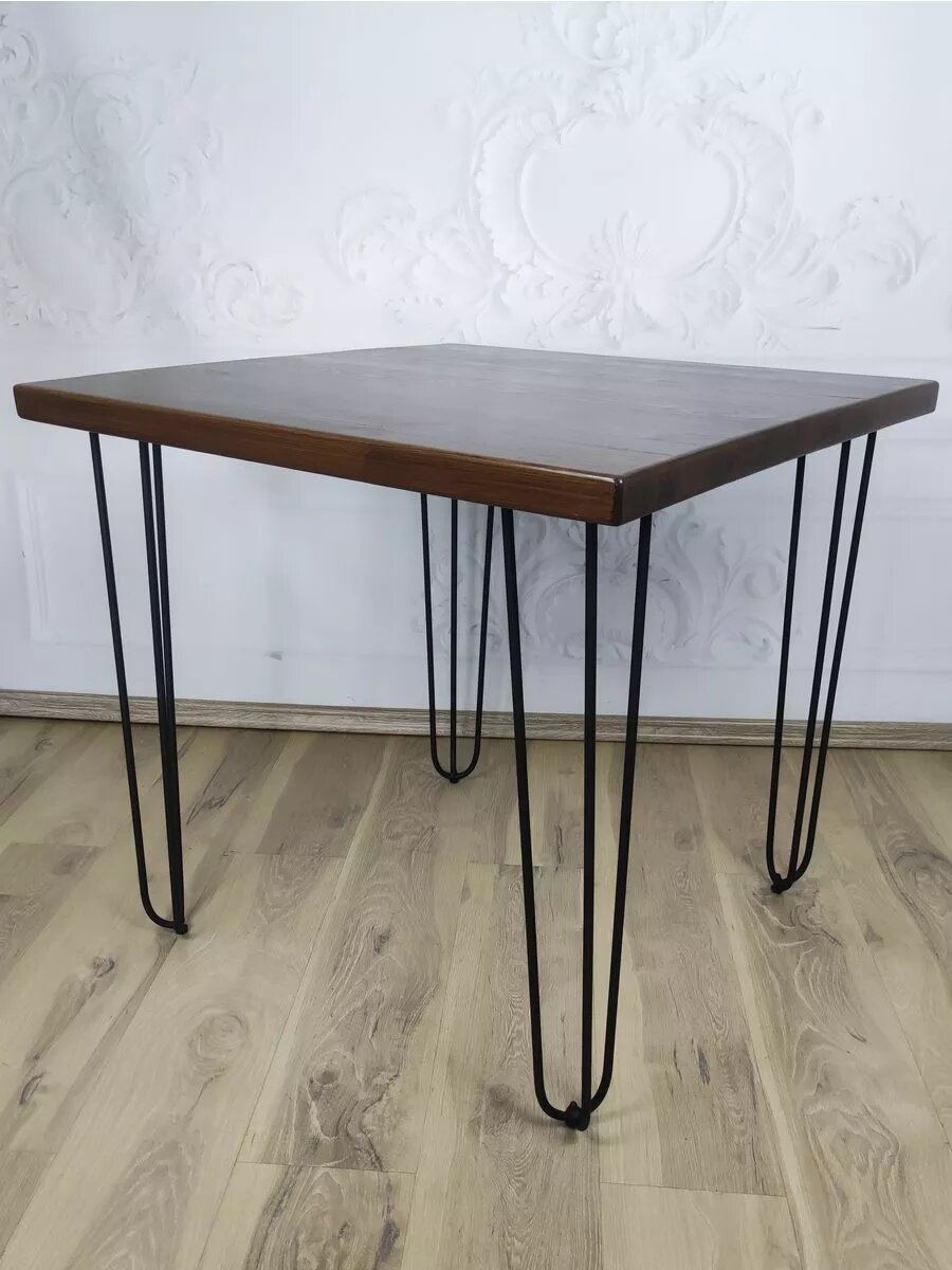 Стол Loft квадратный из массива сосны 40 мм на Шпильках 60x60х75 цвет темный дуб интересное: