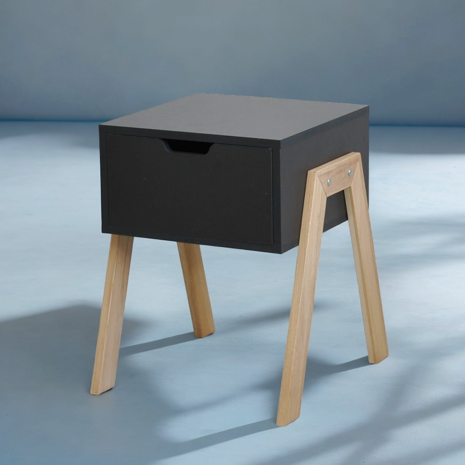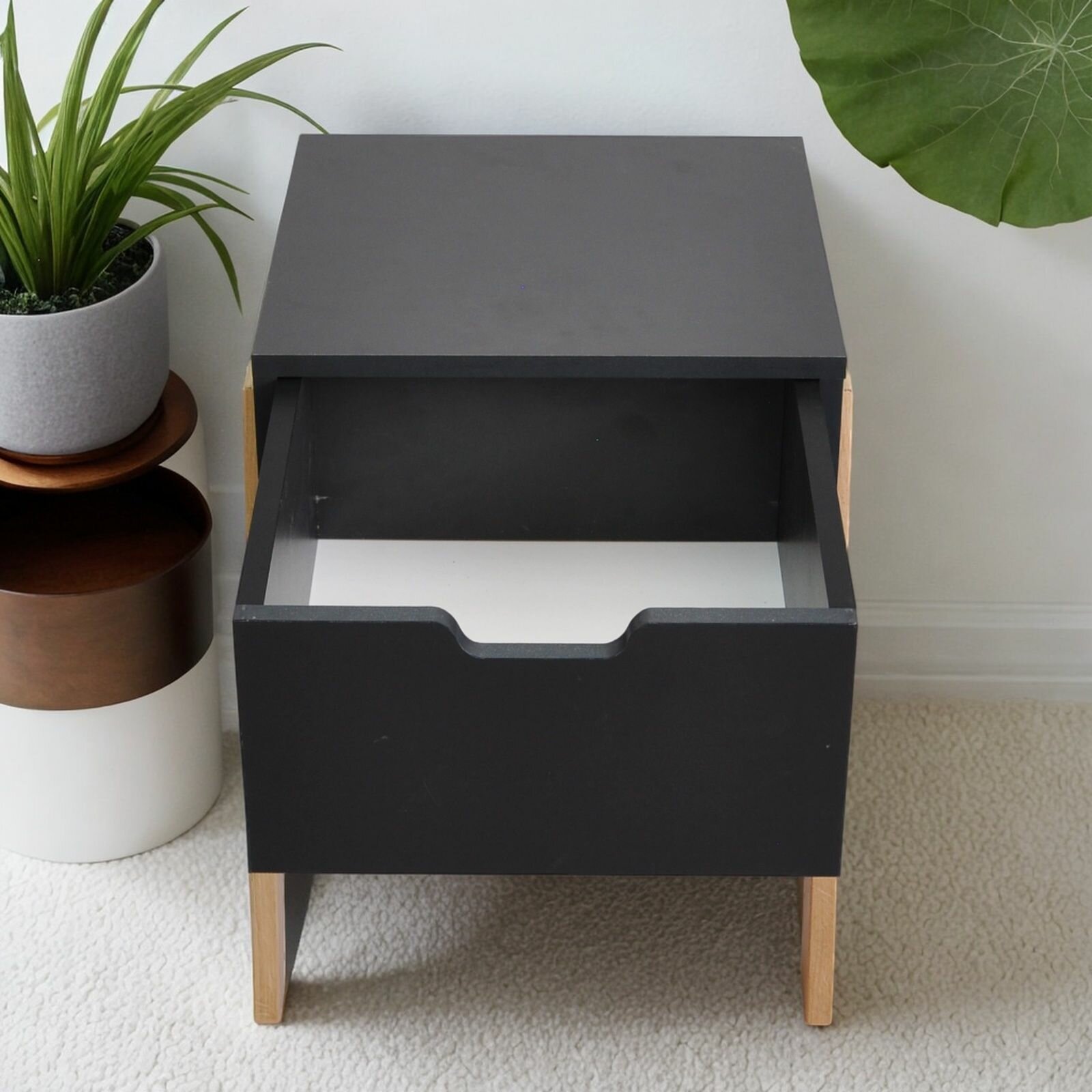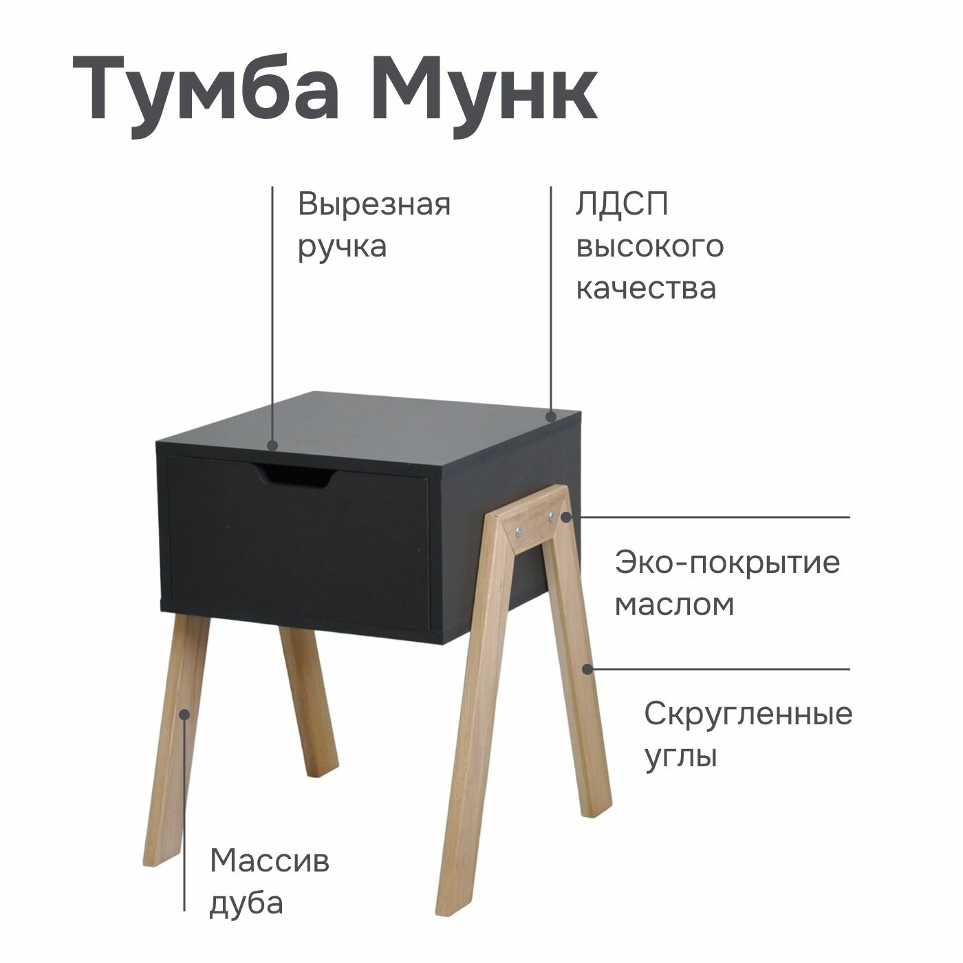 Тумба прикроватная Мунк в спальню и прихожую, с ножками из дуба, с ящиком, черный интересное: