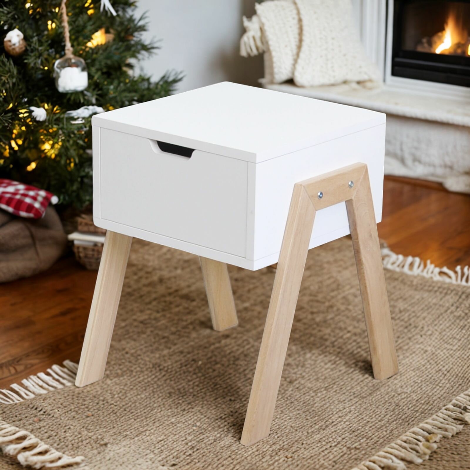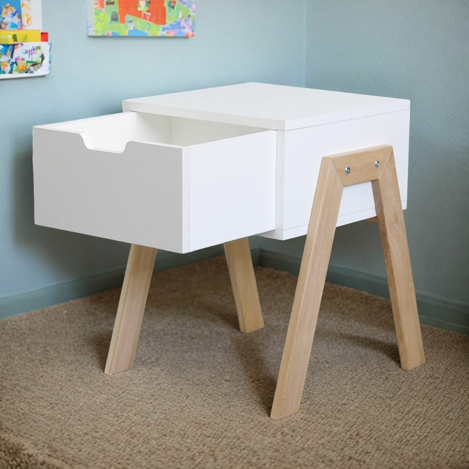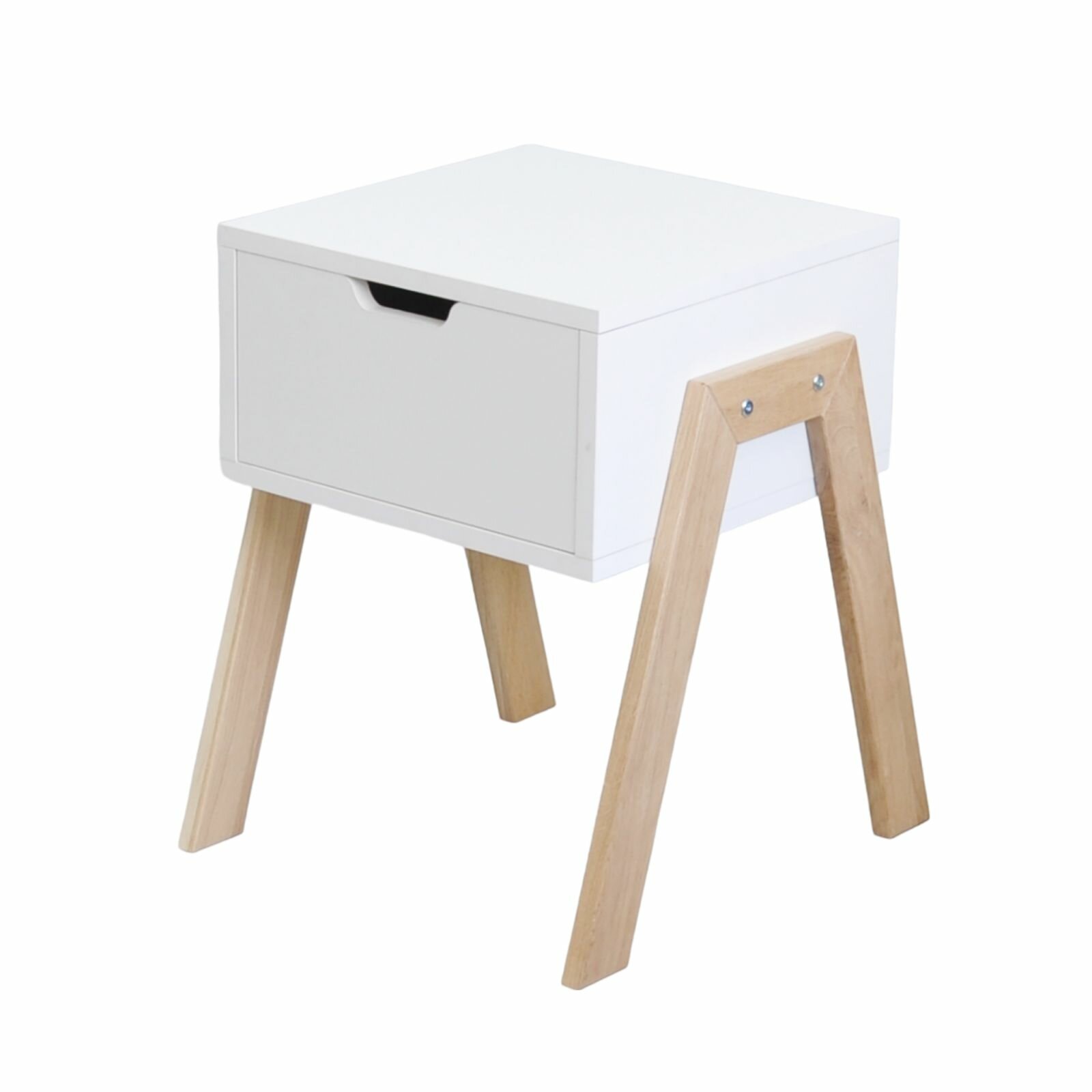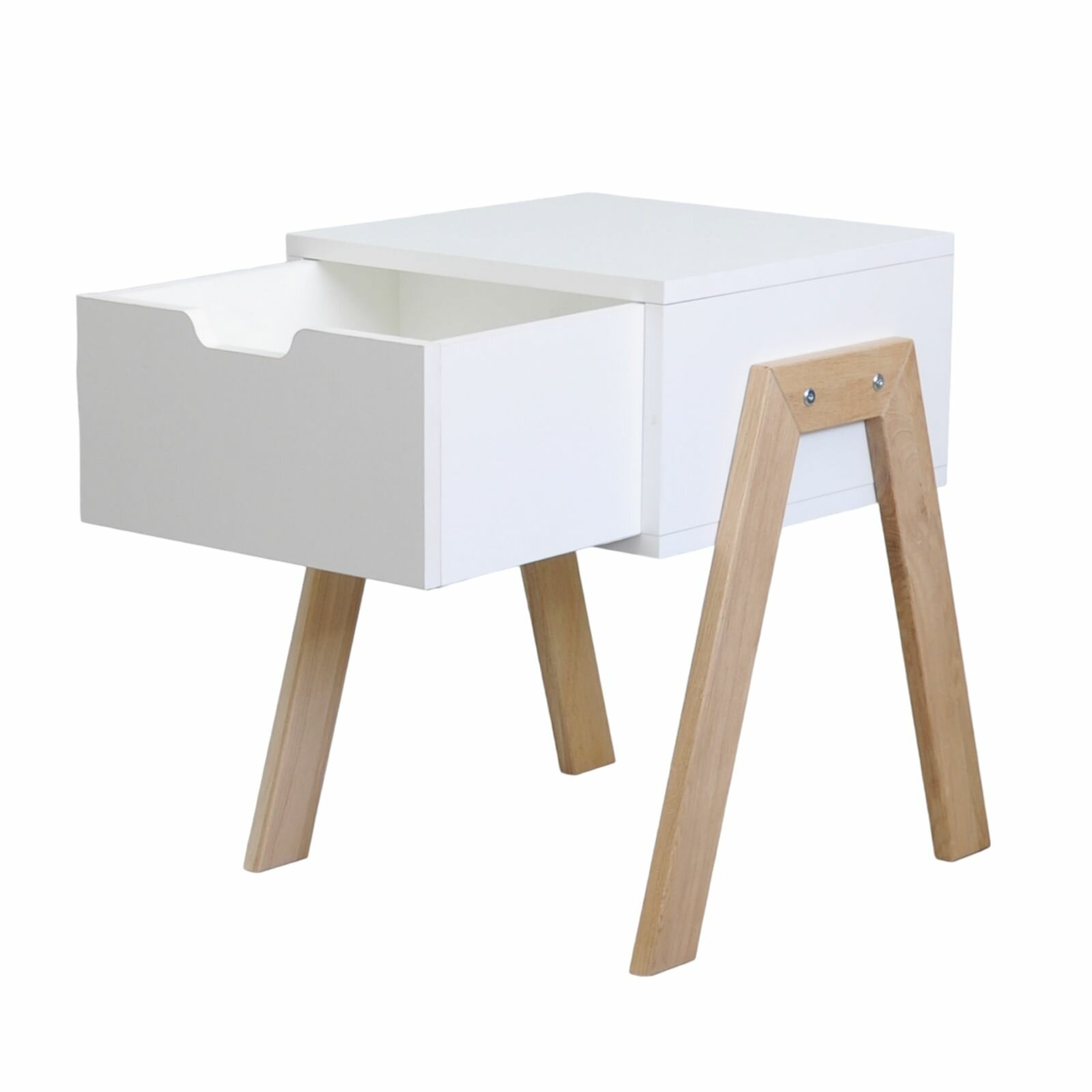 Купить Тумба прикроватная Мунк в спальню и прихожую, с ножками из дуба, с ящиком, белый