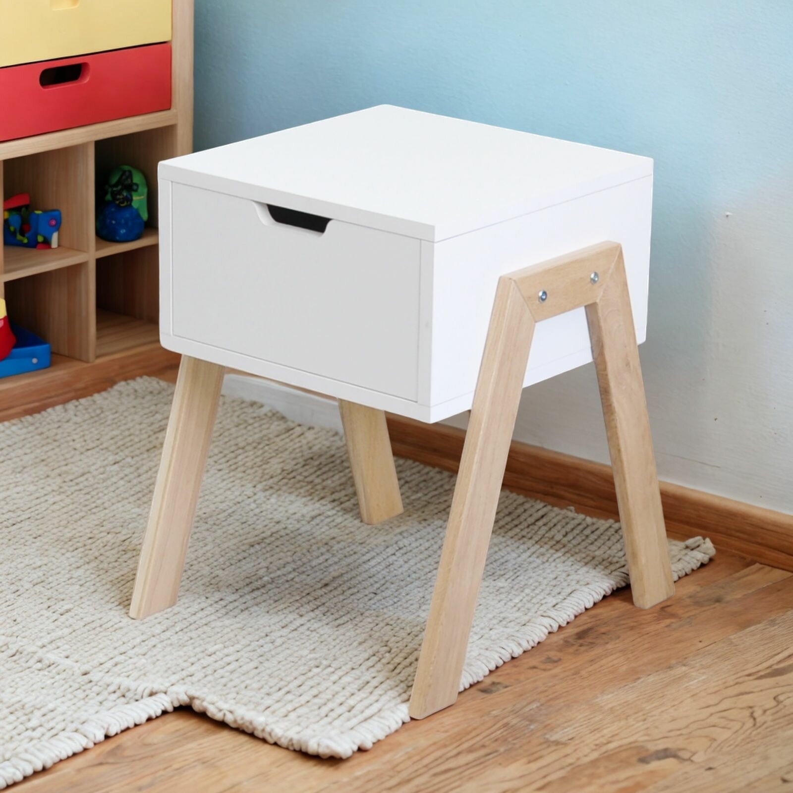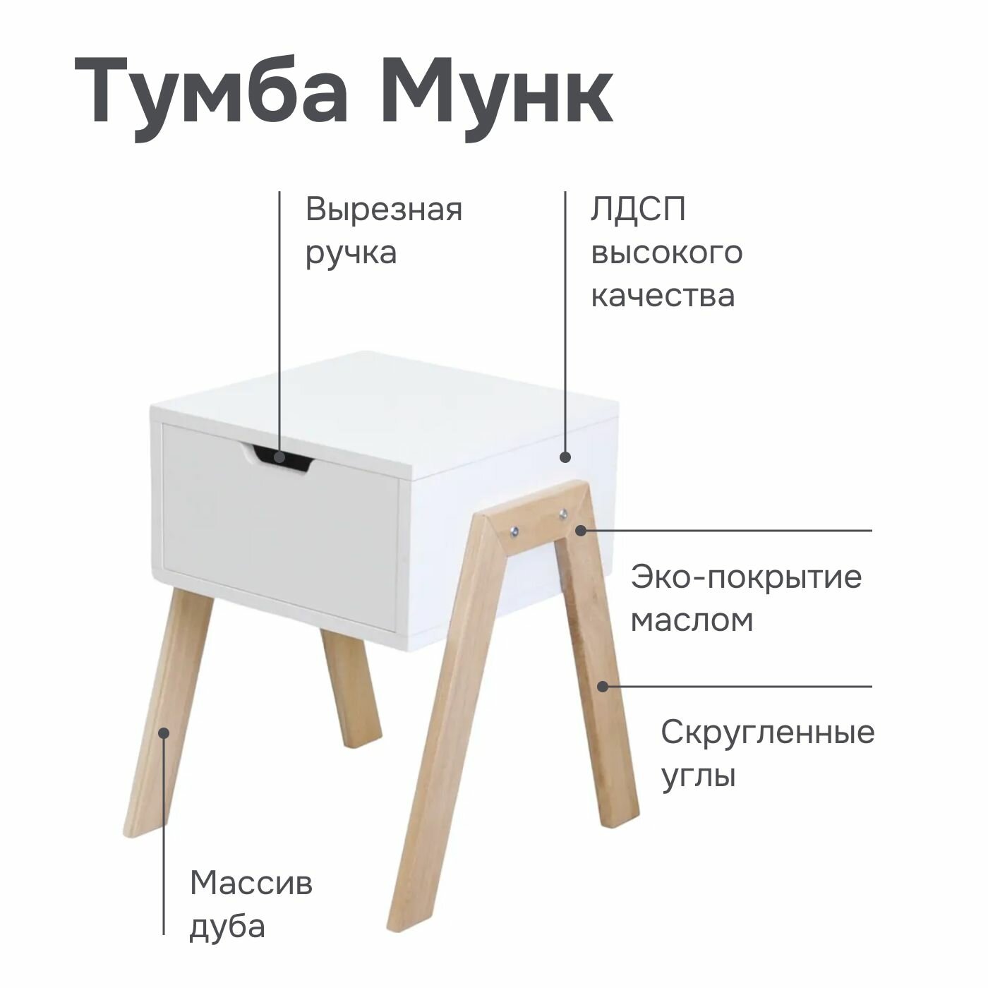 Тумба прикроватная Мунк в спальню и прихожую, с ножками из дуба, с ящиком, белый интересное: