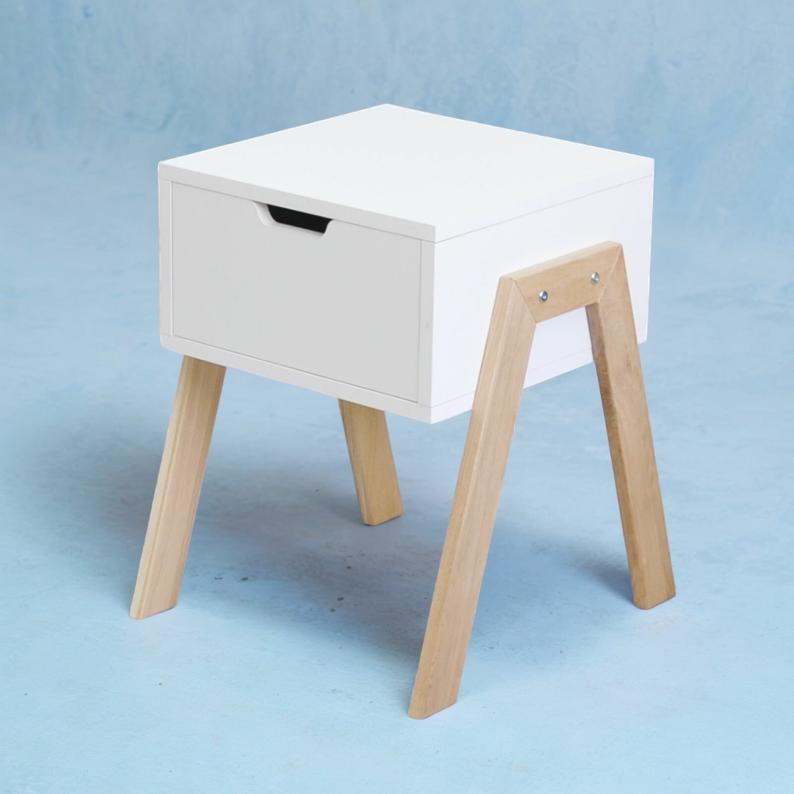 Тумба прикроватная Мунк в спальню и прихожую, с ножками из дуба, без ящика, белая