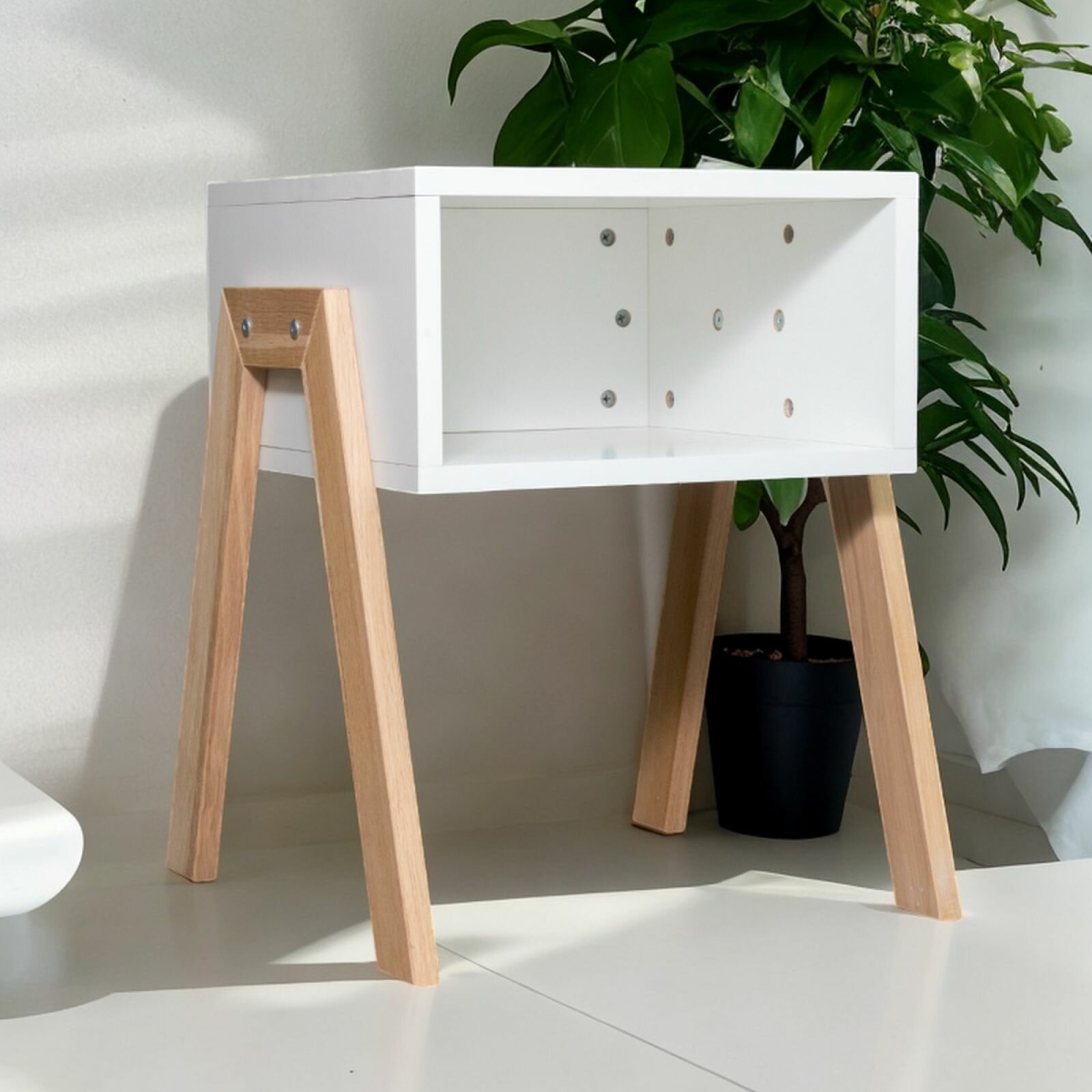 Тумба прикроватная Мунк в спальню и прихожую, с ножками из дуба, без ящика, белая интересное:
