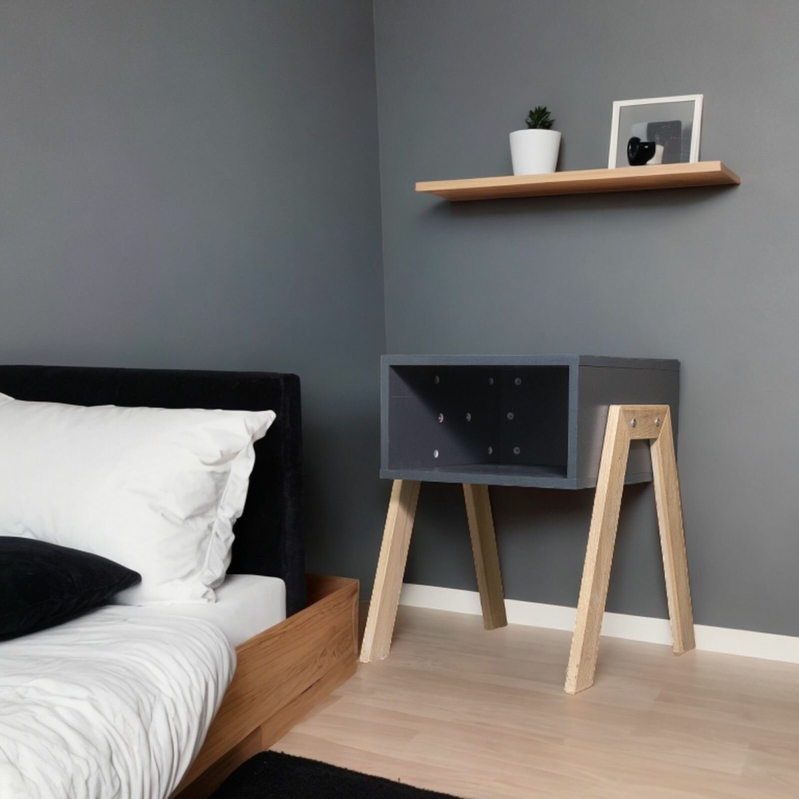 Тумба прикроватная Мунк в спальню и прихожую, с ножками из дуба, с ящиком, черный