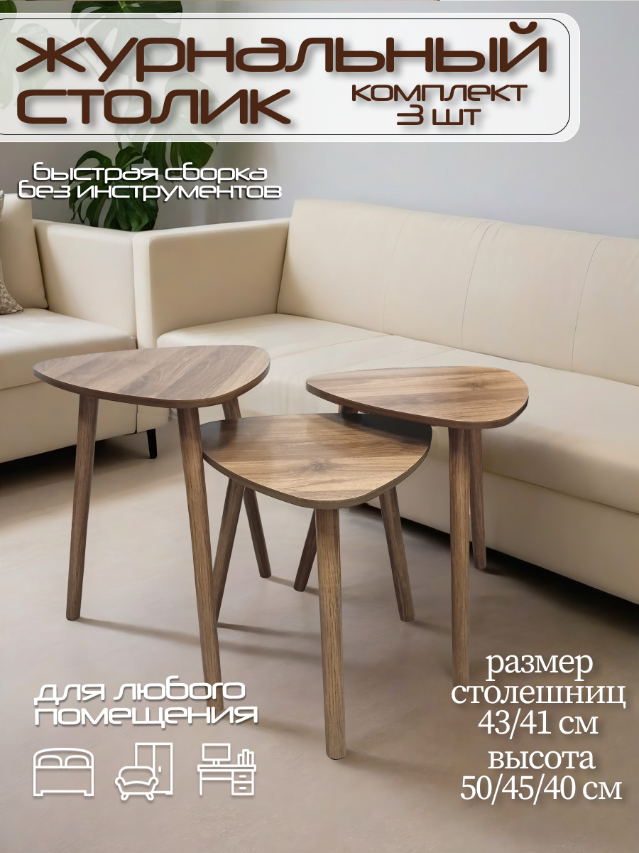 Журнальный столик 3 шт комплект дуб прикроватный кофейный деревянный интересное: