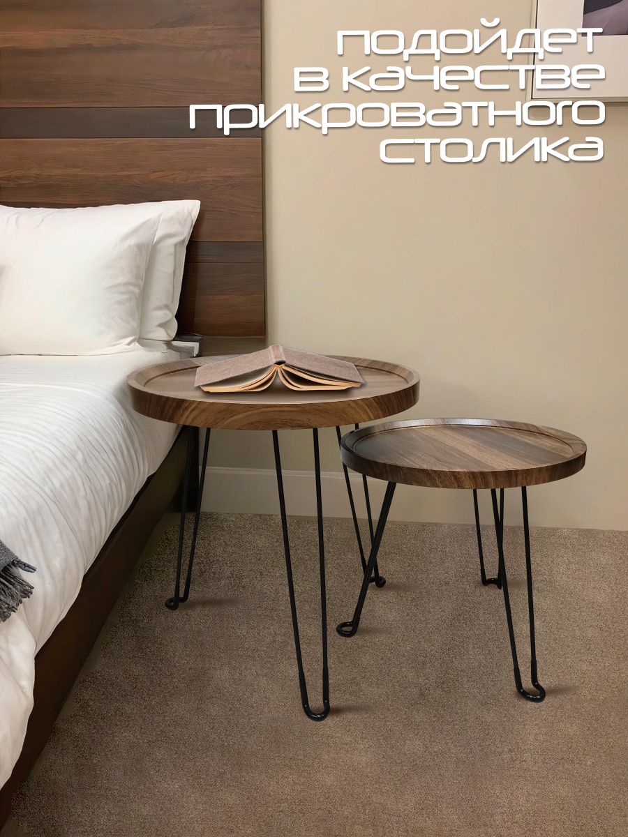 Журнальный столик 2 шт комплект круглый орех металлические ножки интересное: