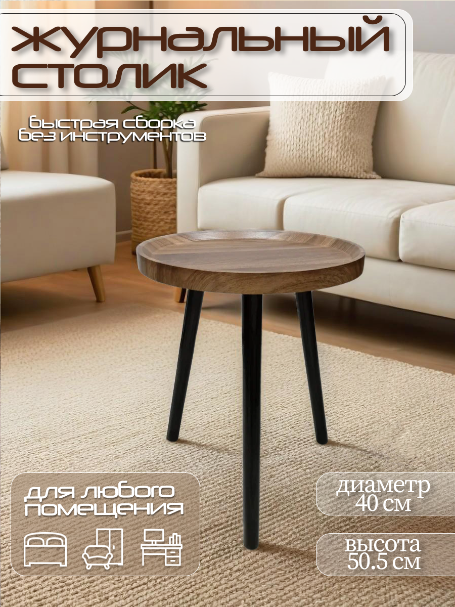 Журнальный столик кофейный круглый 40 см орех высота 50.5 см интересное: