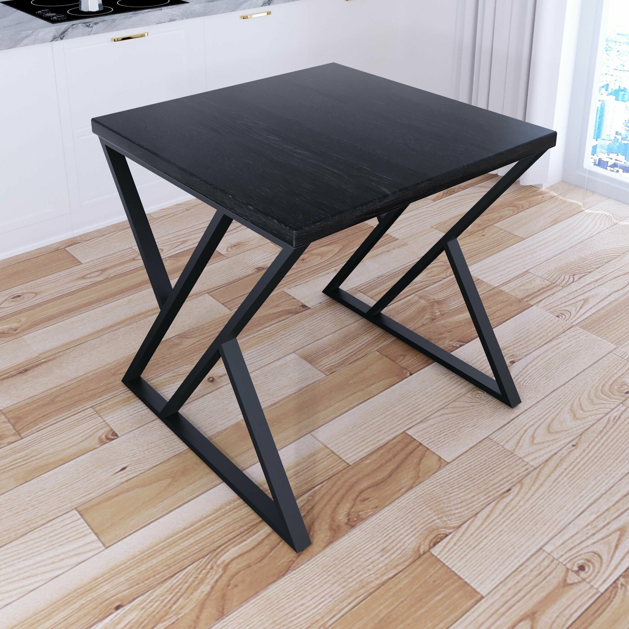 Купить Стол кухонный Loft с квадратной столешницей цвета черного оникса из массива сосны 40 мм и черными металлическими Z-образными ножками, 60x60х75 см