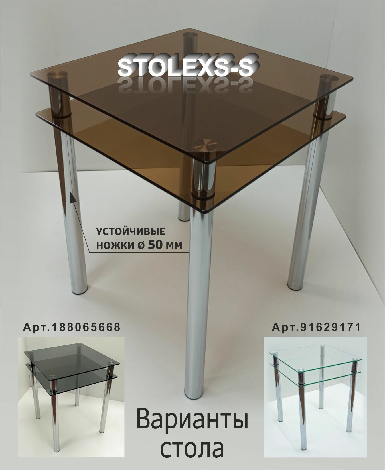 Обеденный стол К-1 бесцветный с черными ногами 60 см