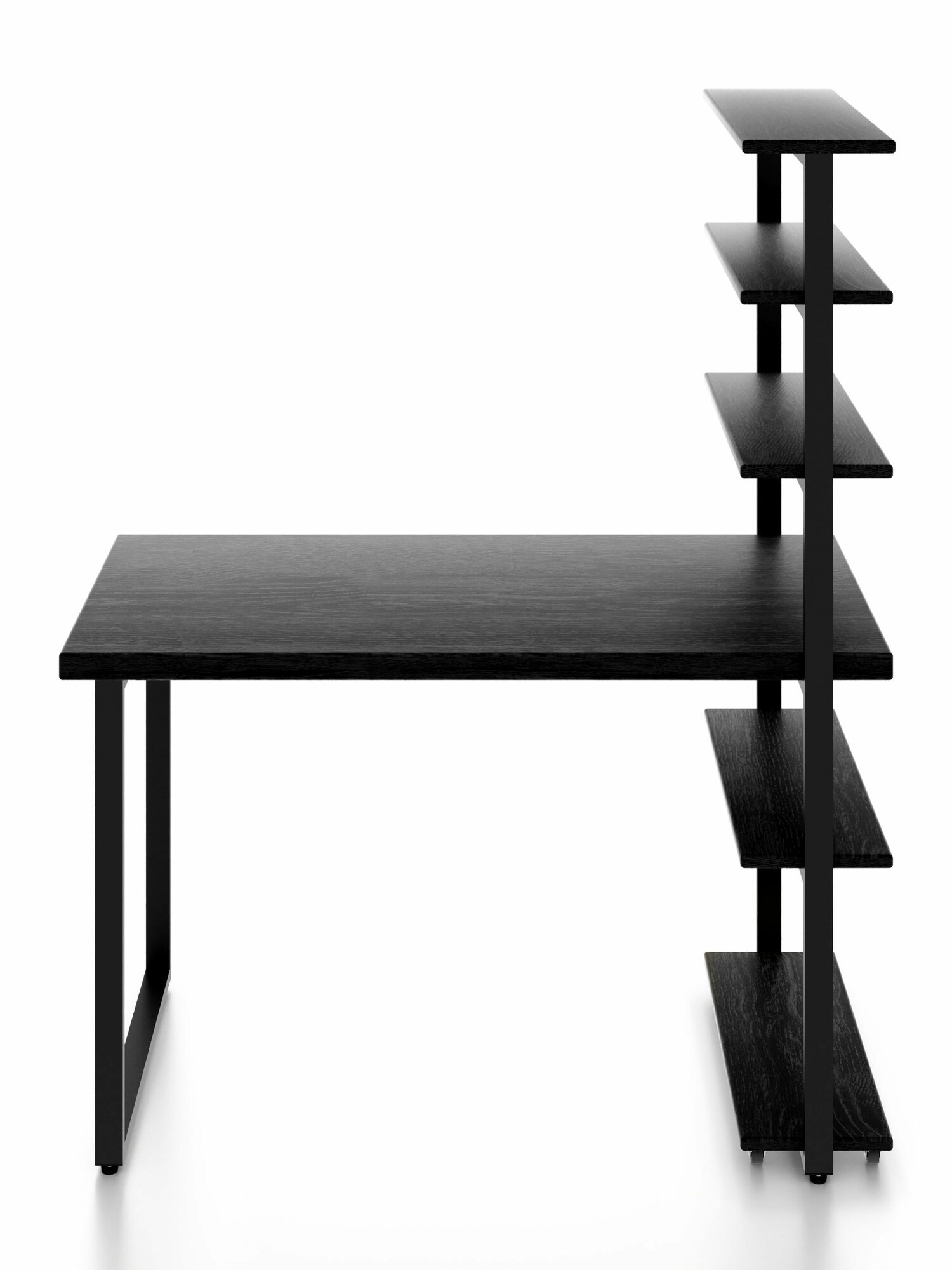 Стол компьютерный Loft с пятью полками, столешница цвета черного оникса из массива сосны 40 мм и черные металлические ножки, 100х60х148 см