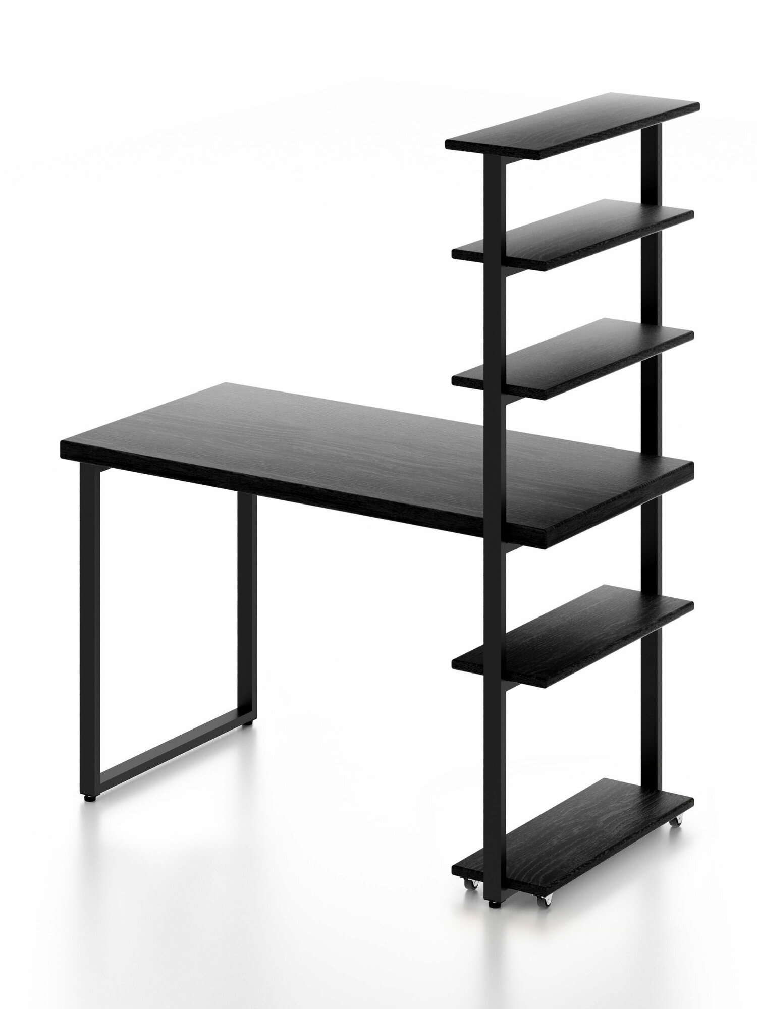 Стол компьютерный Loft с пятью полками, столешница цвета венге из массива сосны 40 мм и черные металлические ножки, 100х60х148 см