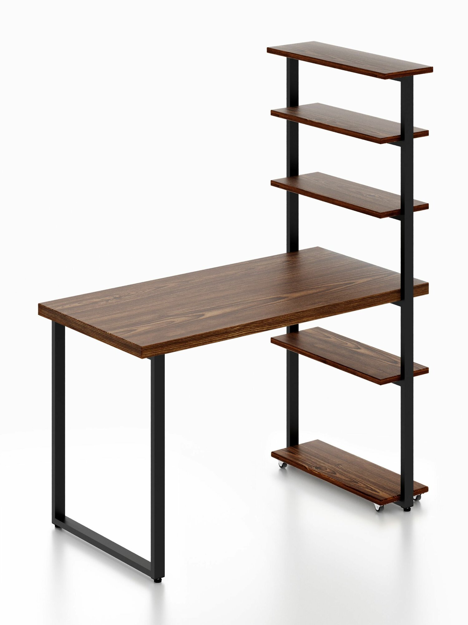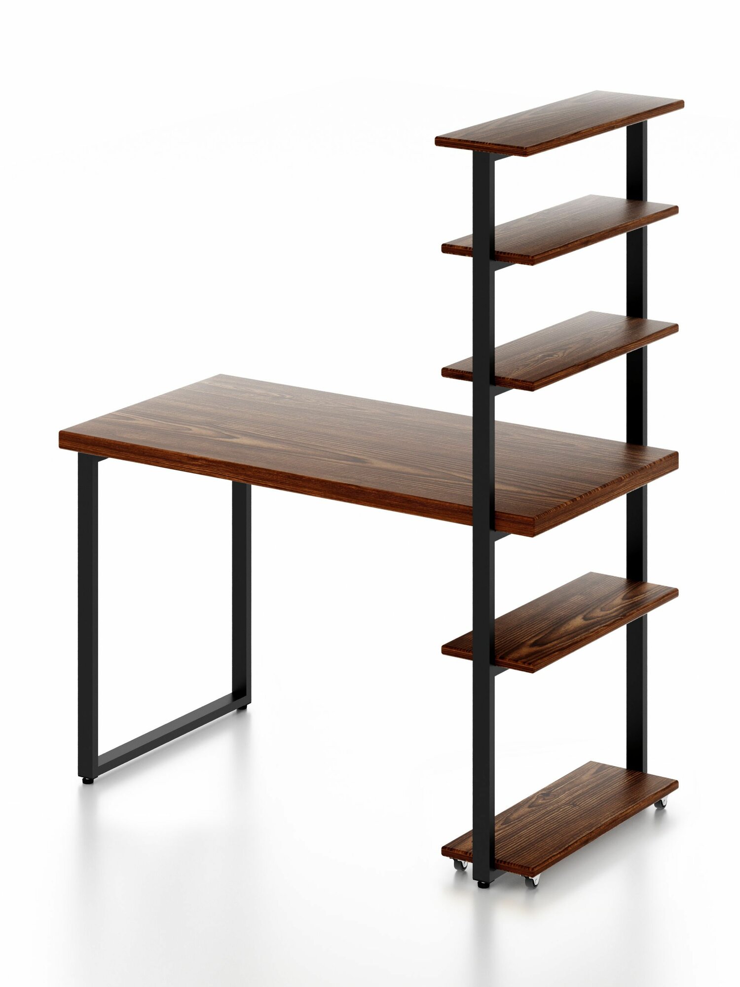 Стол компьютерный Loft с пятью полками, столешница цвета темного дуба из массива сосны 40 мм и черные металлические ножки, 100х80х148 см