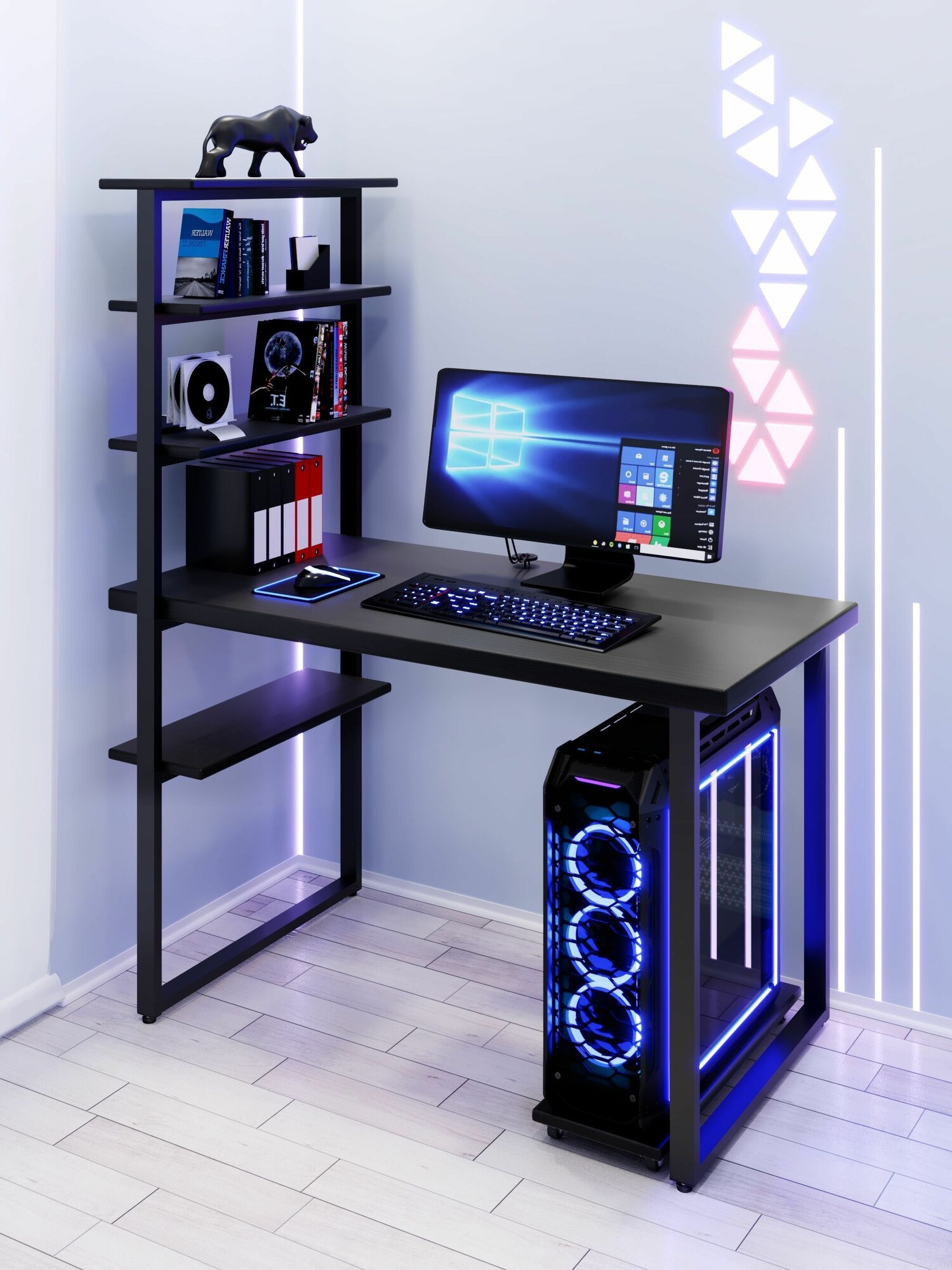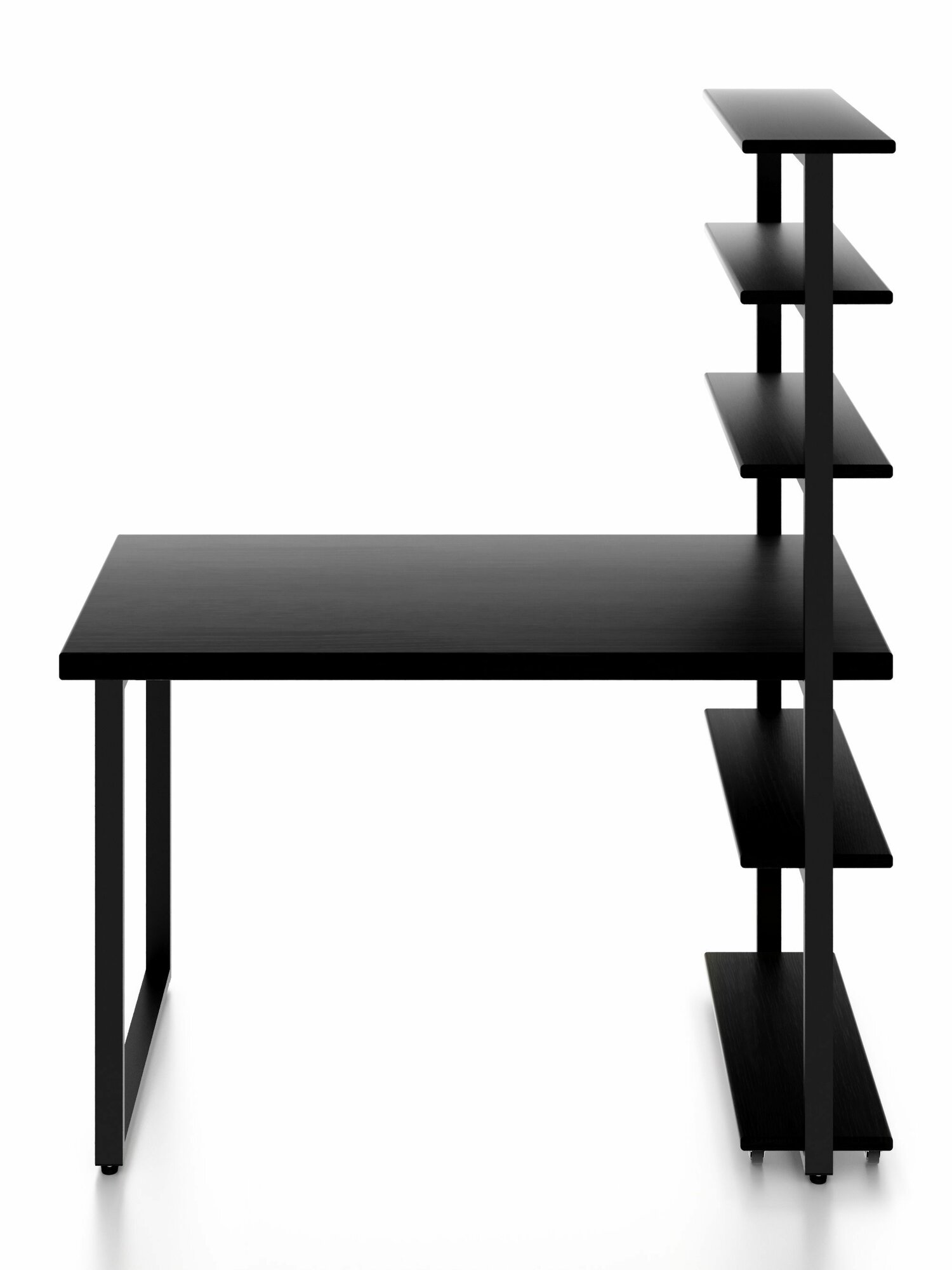 Стол компьютерный Loft с пятью полками, столешница цвета черного оникса из массива сосны 40 мм и черные металлические ножки, 110х60х148 см