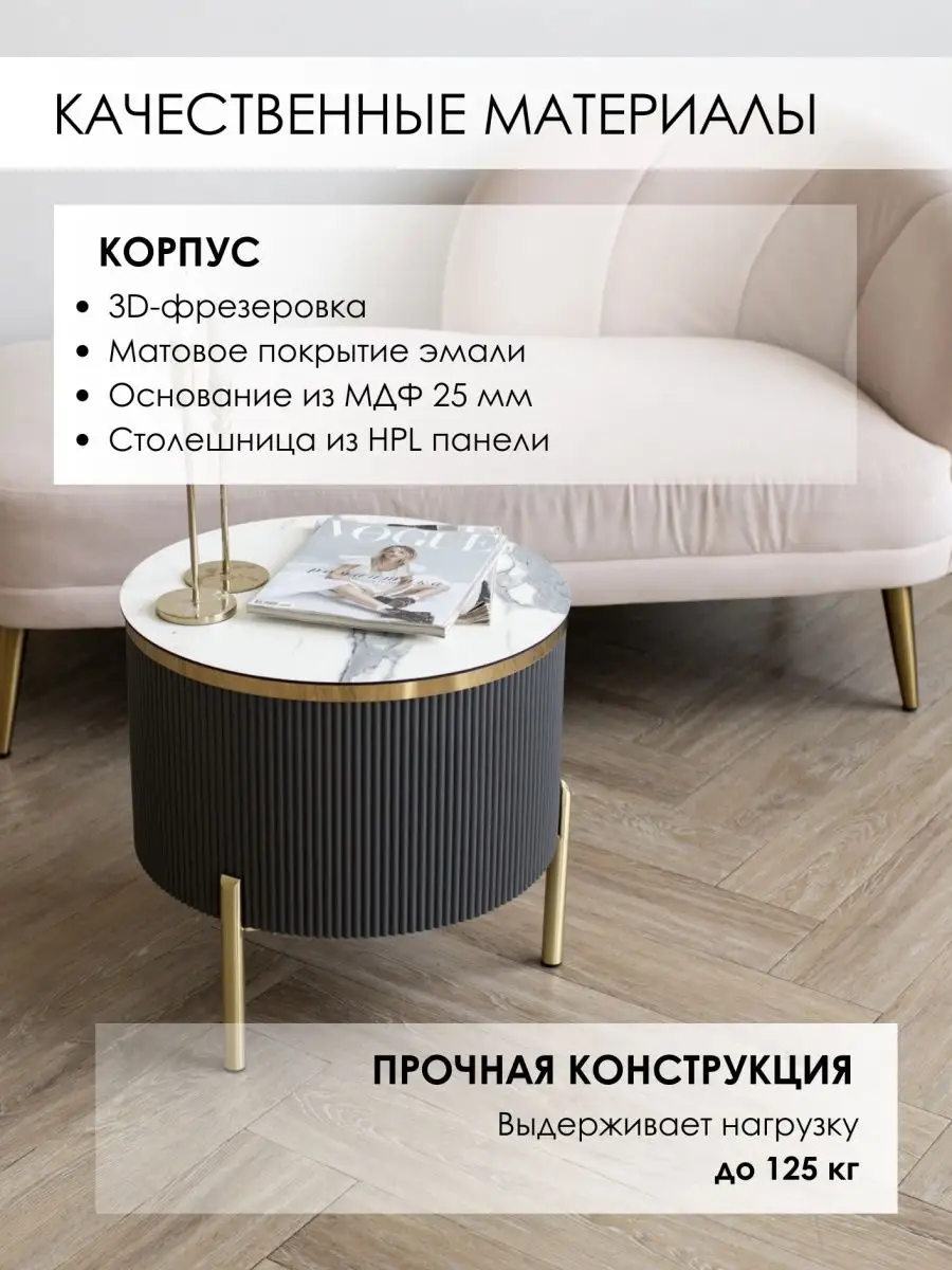 Журнальный стол "Мартин" комплект круглый, 60х60х40 см Мрамор Сахара с золотыми опорами