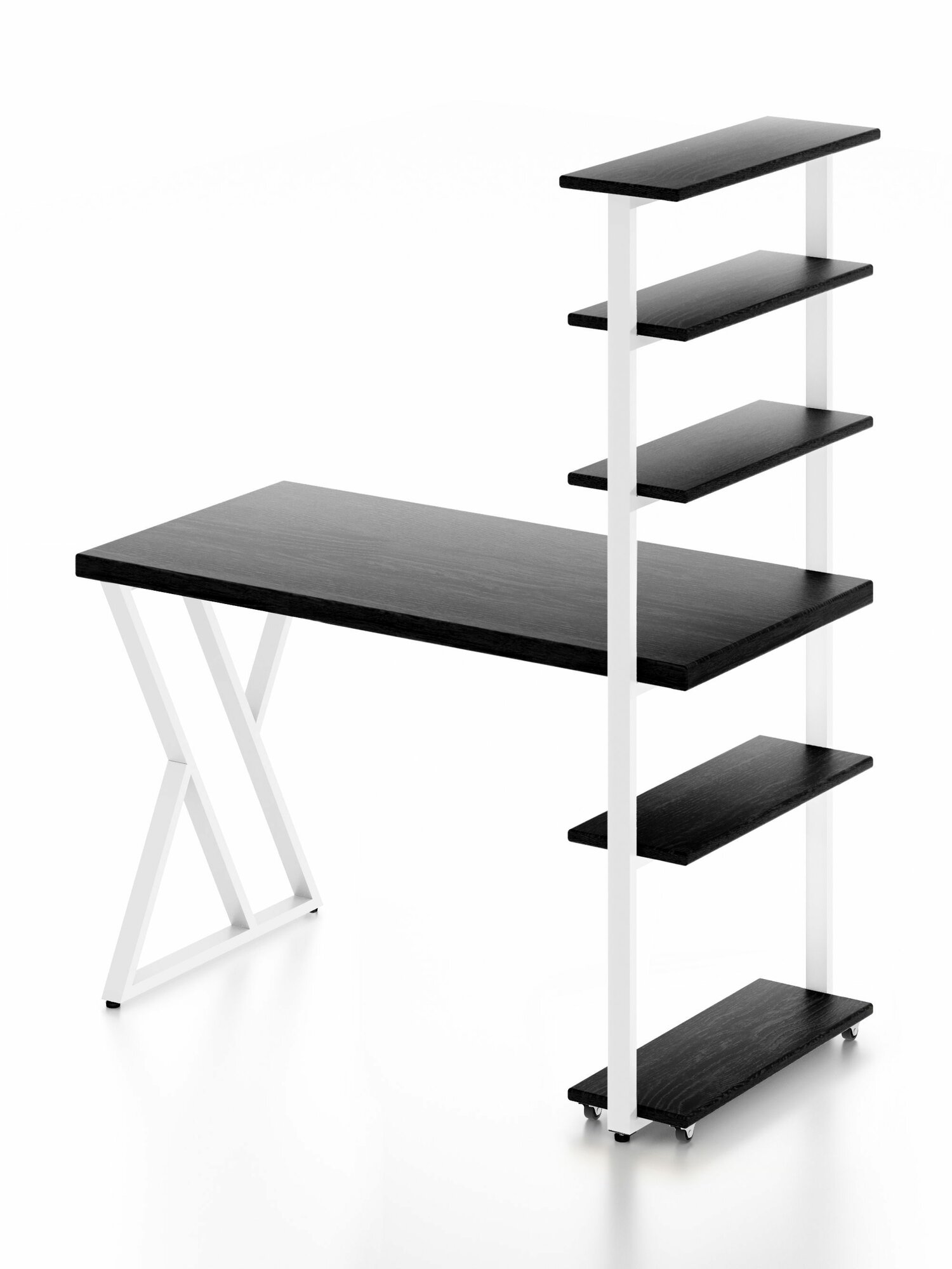 Стол компьютерный Loft с пятью полками, столешница цвета черного оникса из массива сосны 40 мм и белые металлические Z-образные ножки, 100х80х148 см