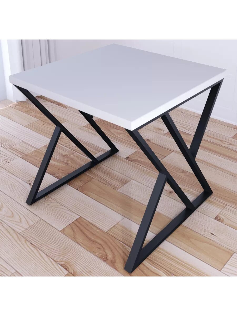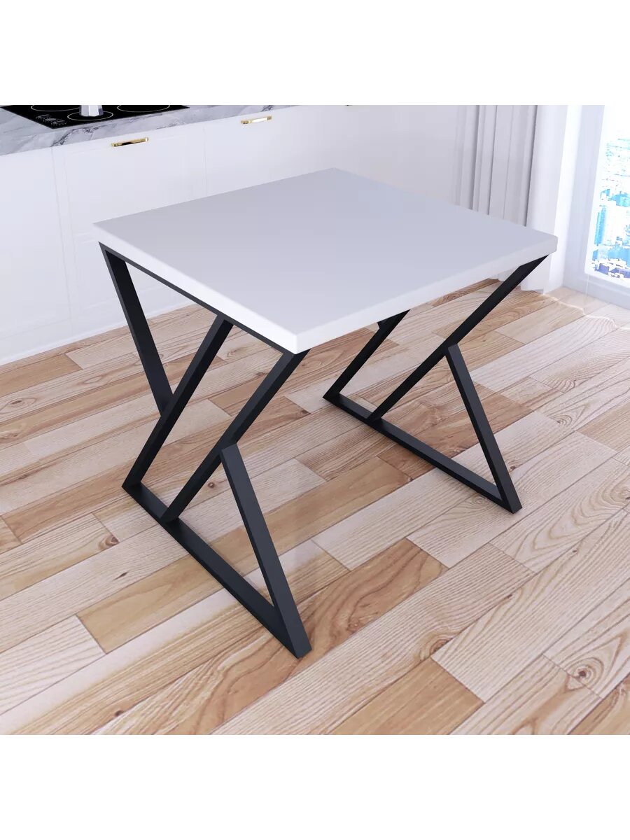 Купить Стол кухонный Loft с квадратной белой столешницей из массива сосны 40 мм и черными металлическими Z-образными ножками, 70x70х75 см