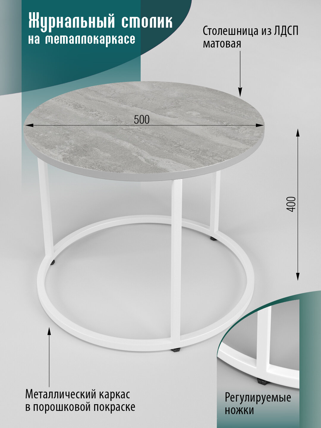 Журнальный стол DiX HOME "Соло", круглый, разборный, ЛДСП, мраморный, черный, лофт-стиль