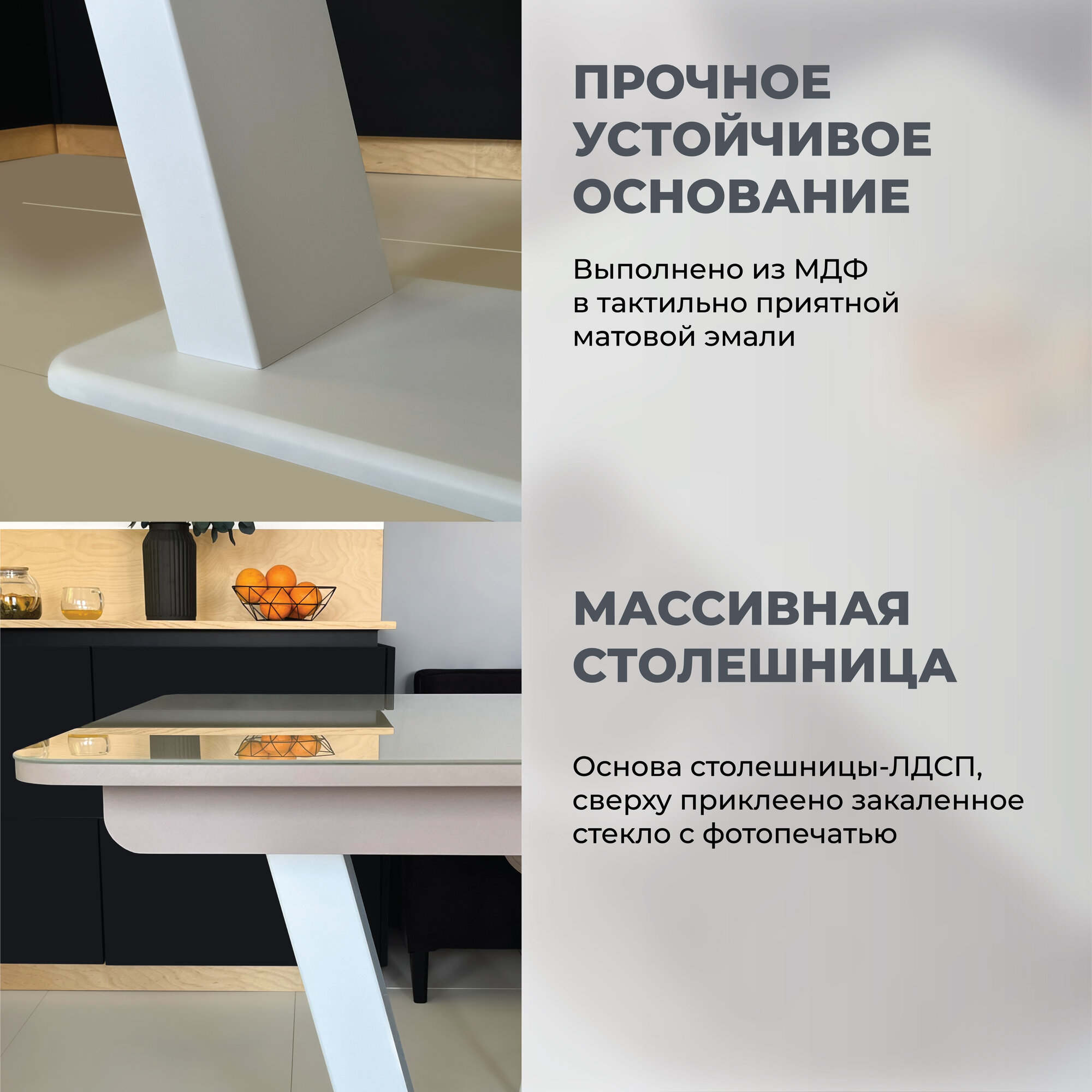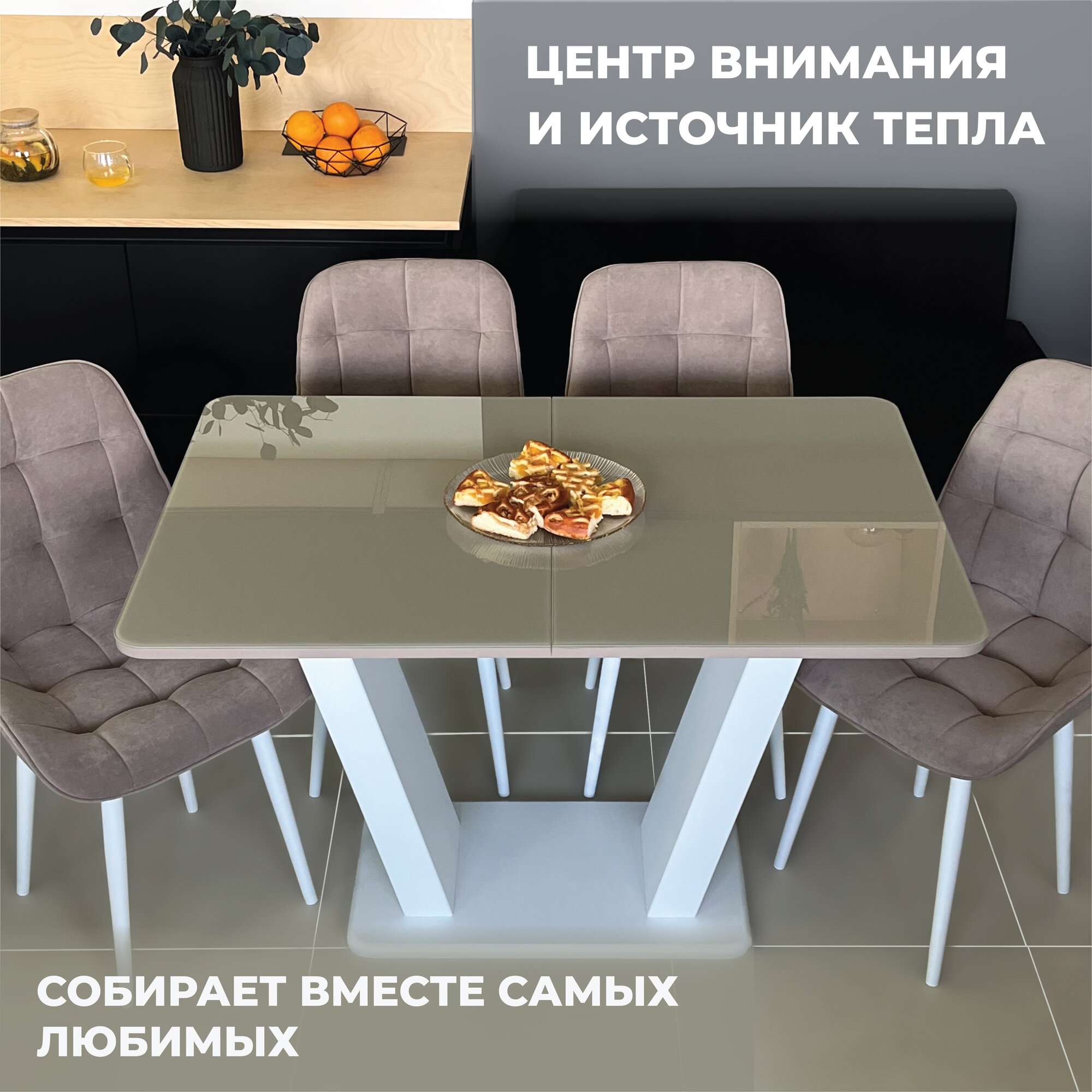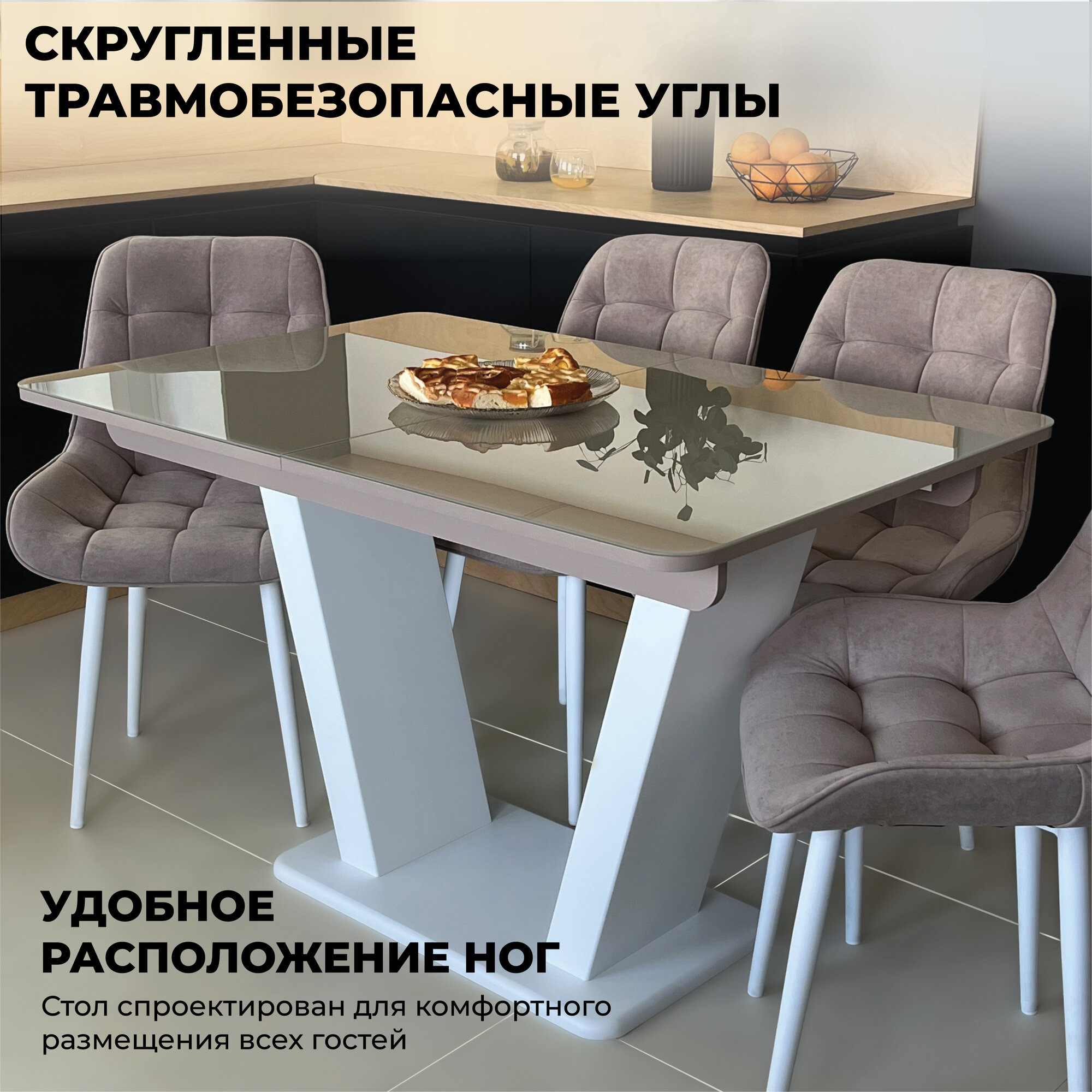 Стол обеденный Денвер раздвижной, 120 х 80 х 75 Мрамор Бежевый с белыми опорами