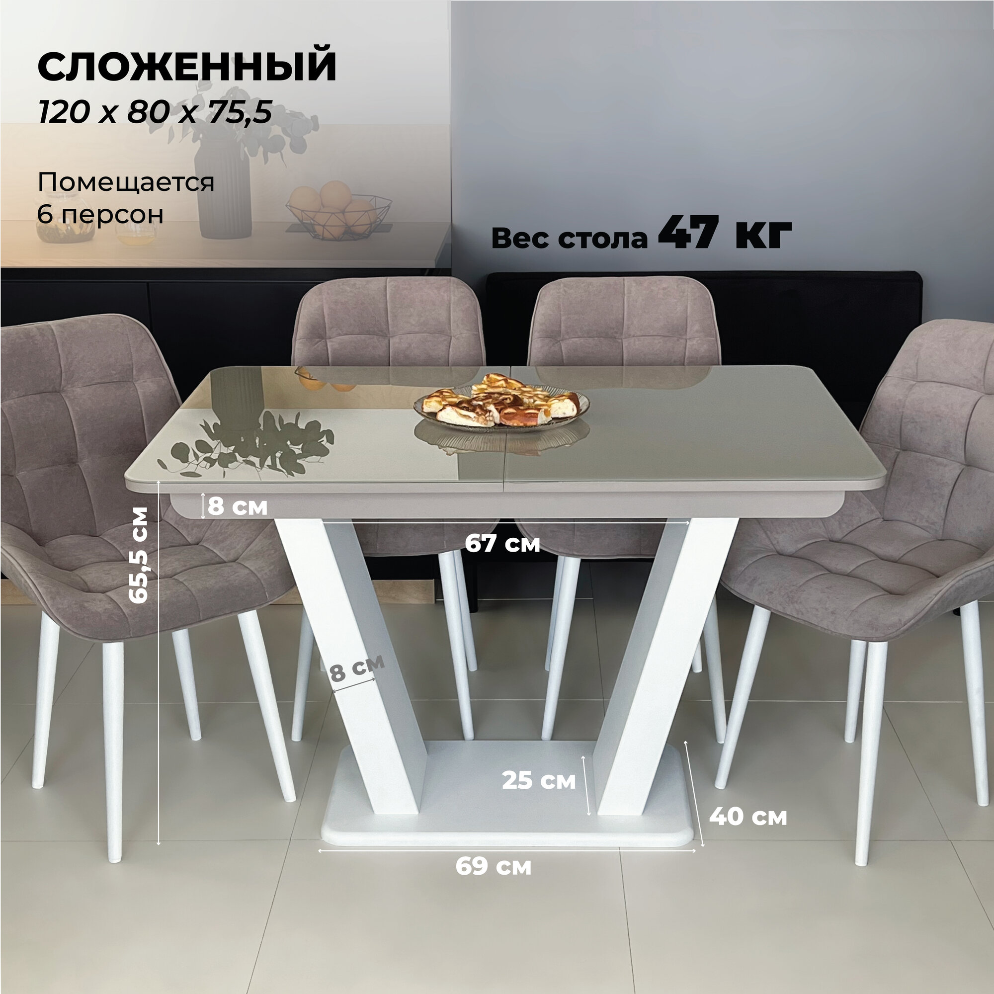 Стол обеденный Денвер раздвижной, 120 х 80 х 75 Мрамор Серый матовый с белыми опорами