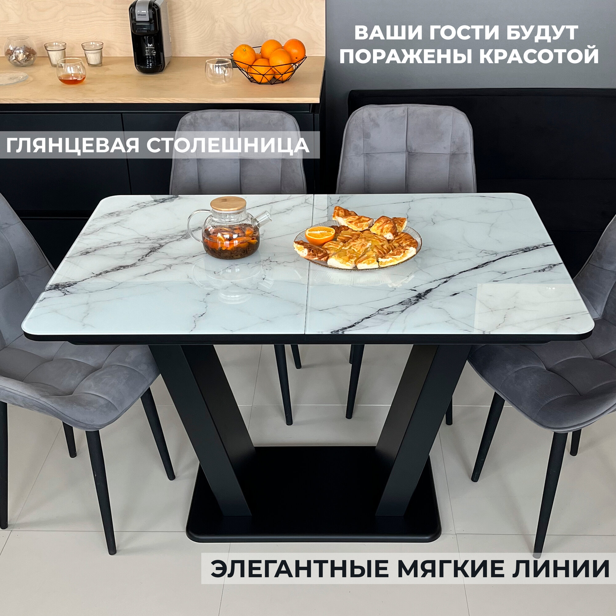 Стол обеденный Денвер раздвижной, 120 х 80 х 75 Мрамор Черный с графитовыми опорами