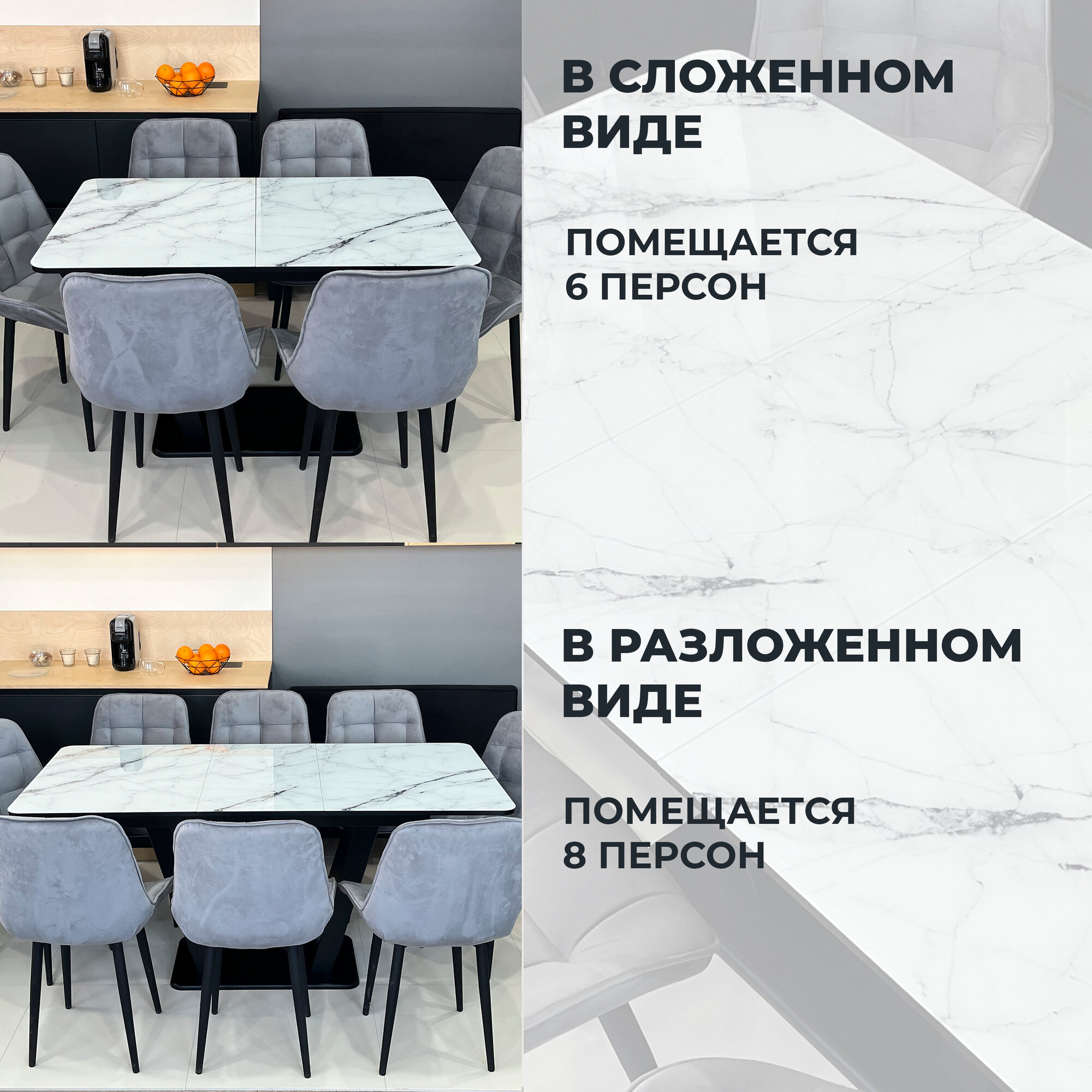 СохранитьСтол обеденный Денвер раздвижной, 120 х 80 х 75 Мрамор Белый с черными опорами интересное: