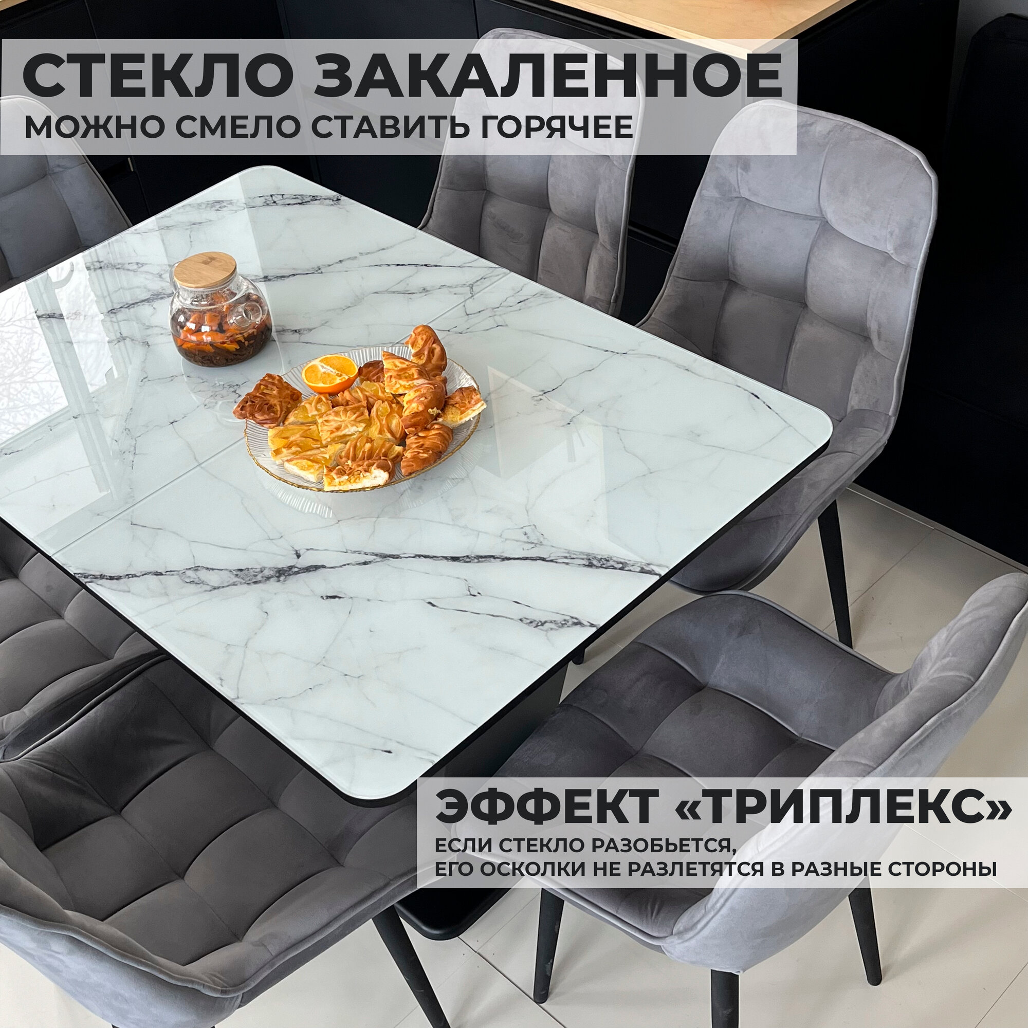 Стол обеденный Денвер раздвижной, 120 х 80 х 75 Мрамор Белый с графитовыми опорами