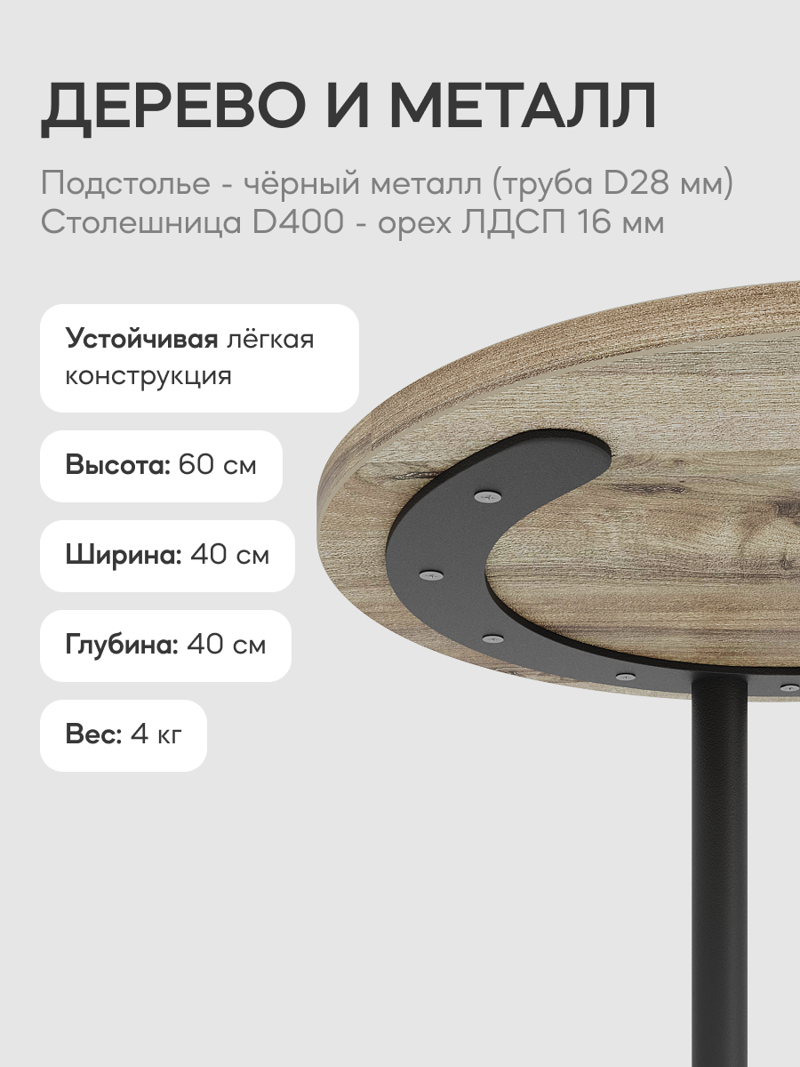 СохранитьGEN GROUP Журнальный столик HORSIX Wood с чёрным металлическим подстольем и столешницей орех, 40х40х60 см интересное: