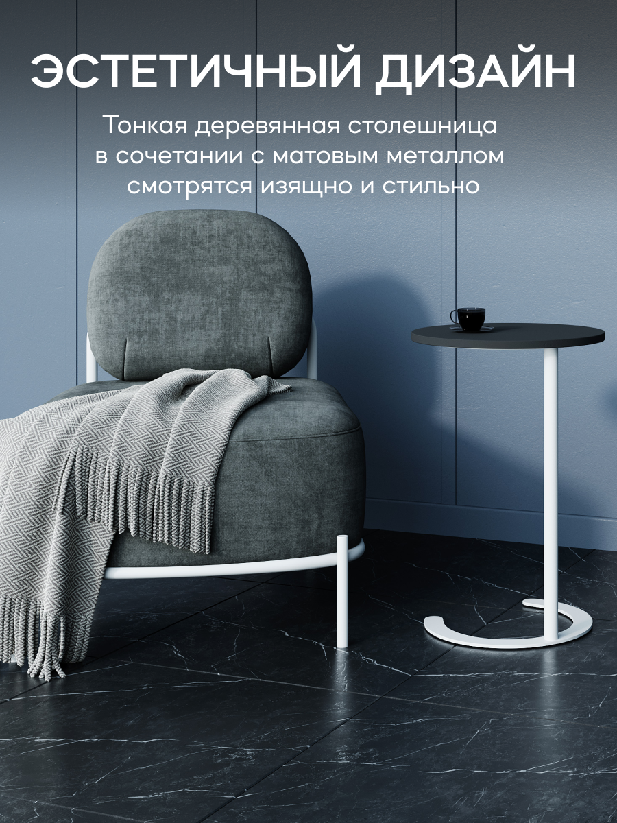 GEN GROUP Журнальный столик для завтрака HORSIX Wood, металлический приставной белый