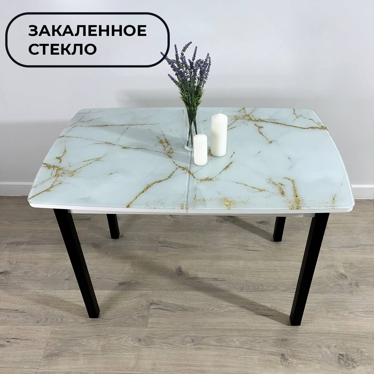 Купить Стол обеденный Антверпен раздвижной, 110х 70 х 75 Мрамор Сахара с черными опорами