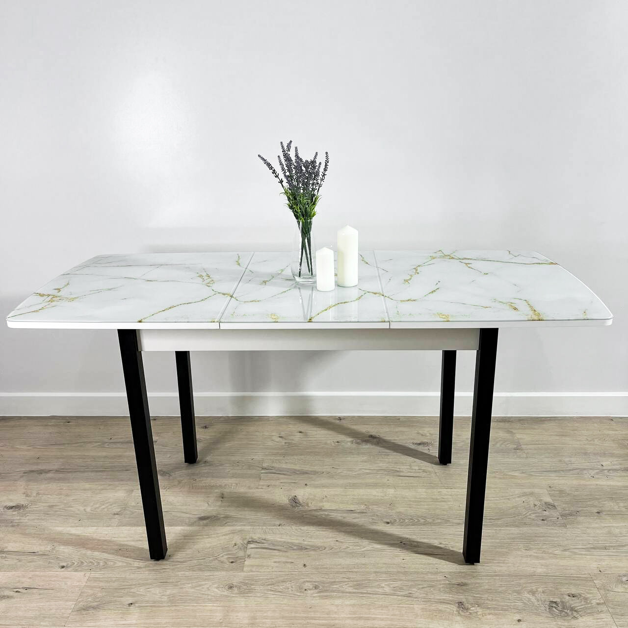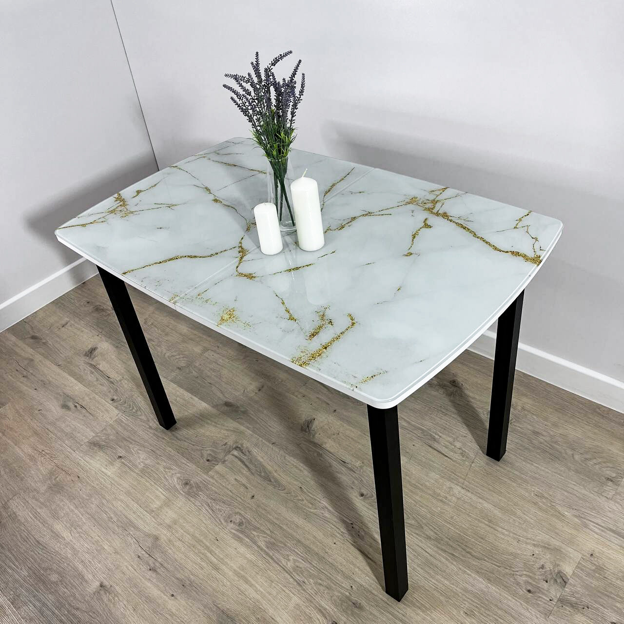 Стол обеденный Антверпен раздвижной, 110х 70 х 75 Мрамор Черный с белыми опорами