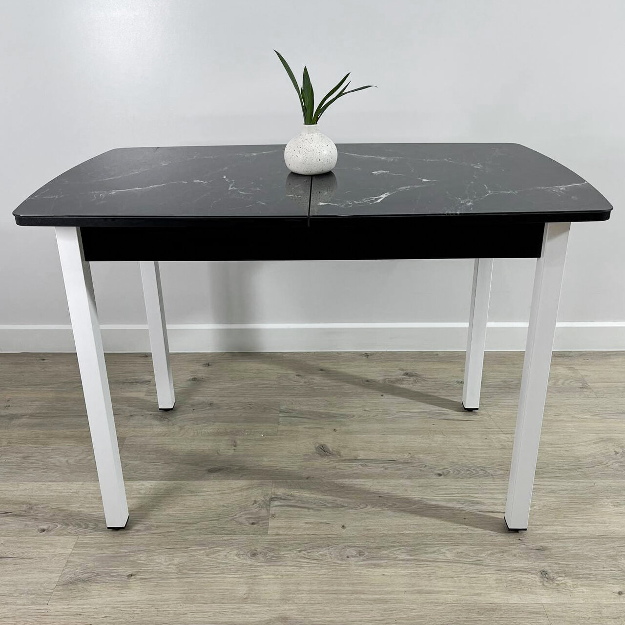 Купить Стол обеденный Антверпен раздвижной, 110х 70 х 75 Мрамор Черный с белыми опорами