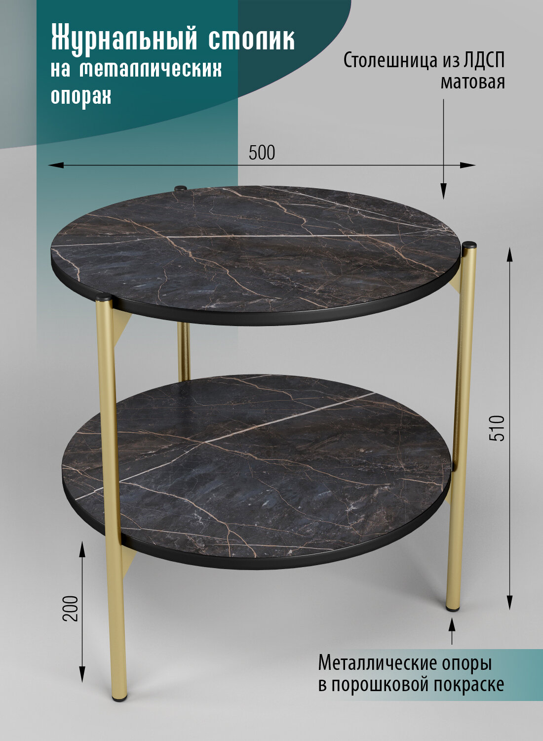 Столик журнальный DiX HOME Шафран, двухъярусный, лофт, чёрный/золотой, 50х50х51 см интересное: