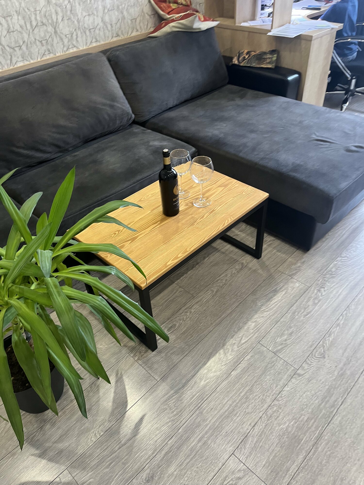 Столик журнальный натуральное дерево, разборный, 50/80 см, цвет серый и черный