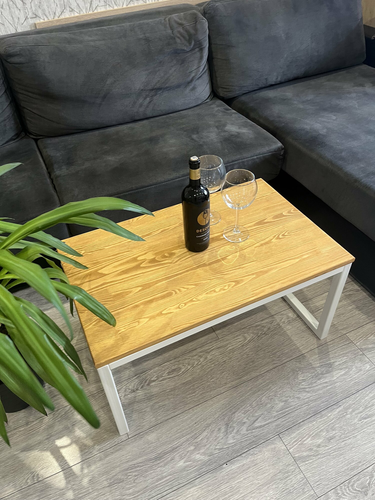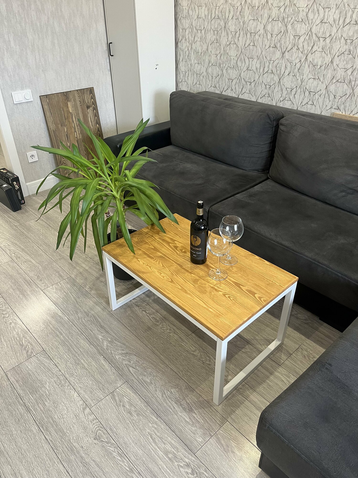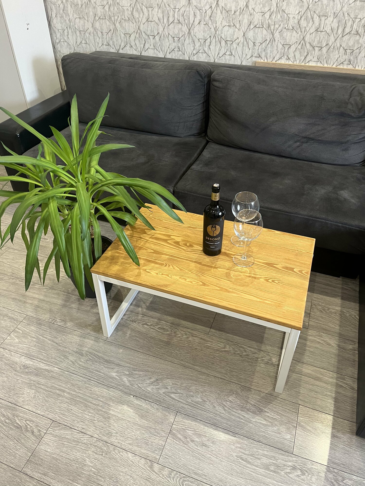 Столик журнальный натуральное дерево, разборный, 50/80 см, цвет серый и белый