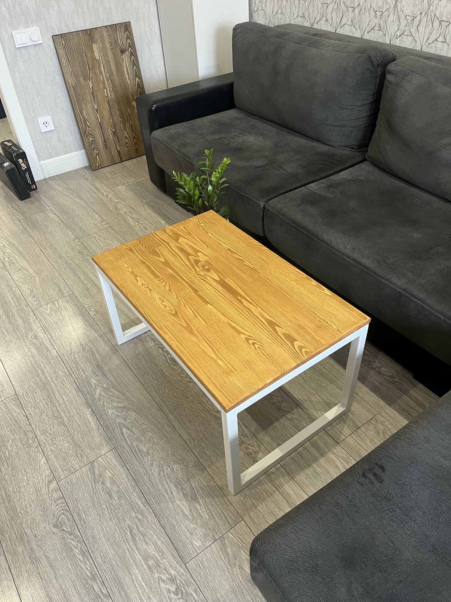 Столик журнальный натуральное дерево, разборный, 50/80 см, цвет серый и черный