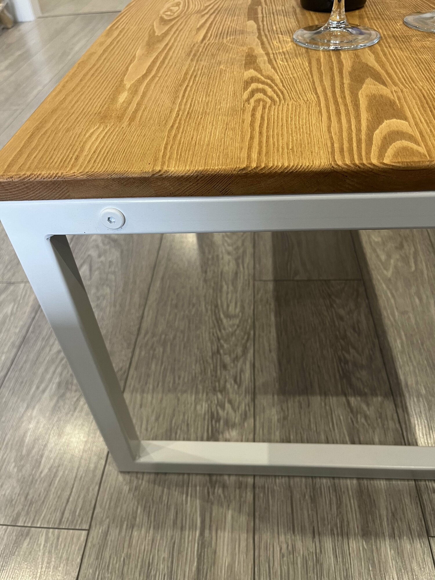 Стол кухонный Loft со столешницей из массива сосны 40 мм без шлифовки и покрытия, с черными металлическими Z-образными ножками, 140х80х75 см