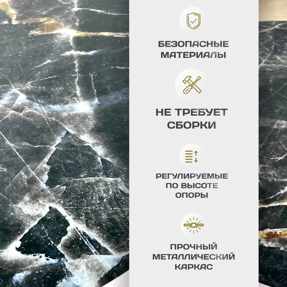 Журнальный стол "Мартин" комплект круглый, 60х60х40 см Мрамор Черный с золотыми опорами